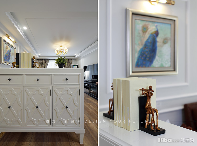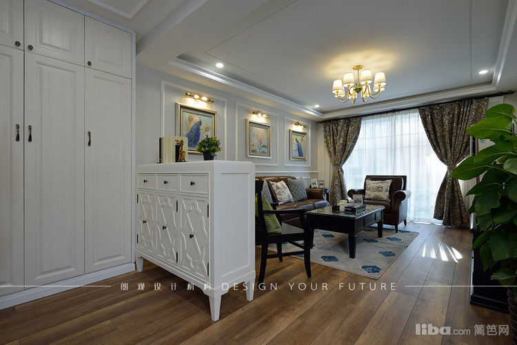 稳重大气的客厅布局,挂画完美的稳住了客厅的重心。进门处利用柜子设置了玄关。