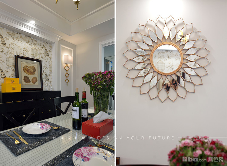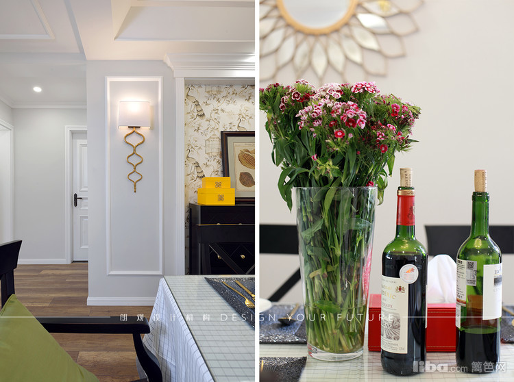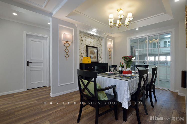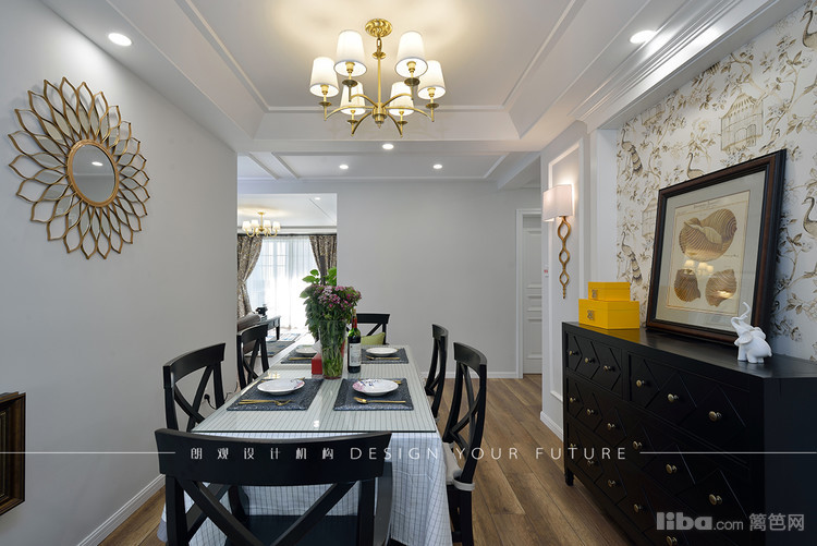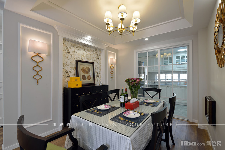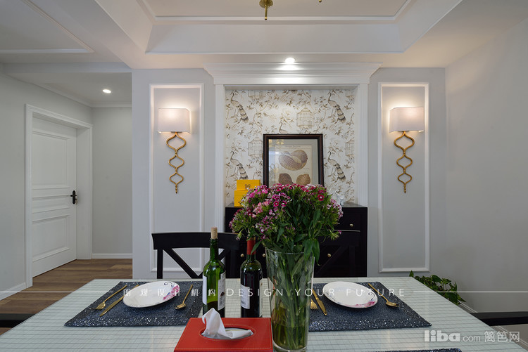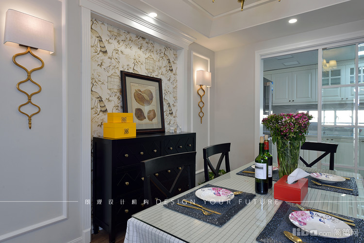 餐桌边柜实用性颇强,别致的壁灯同时也起到了装饰墙面的效果。