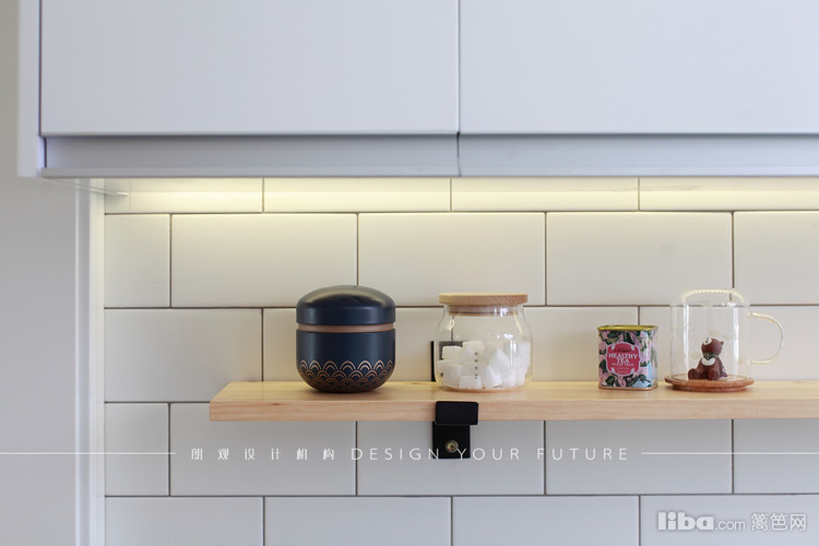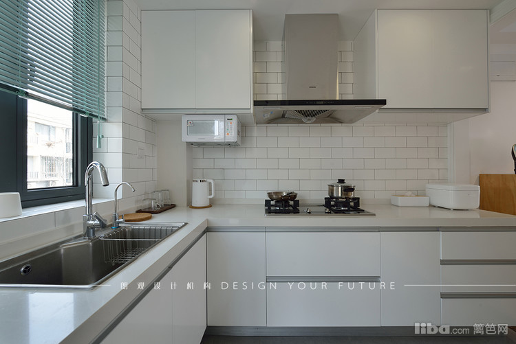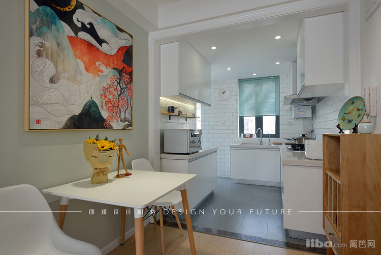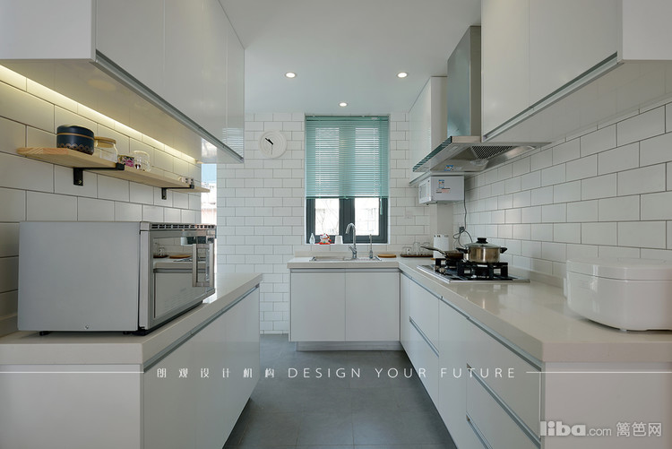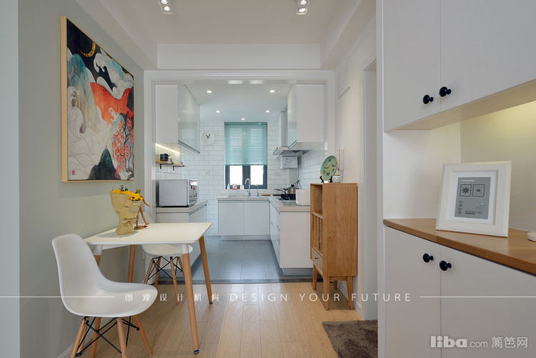 开放式厨房采用了白色主色调,扩展了客餐厅的空间感,厨房到底是一个操作阳台。