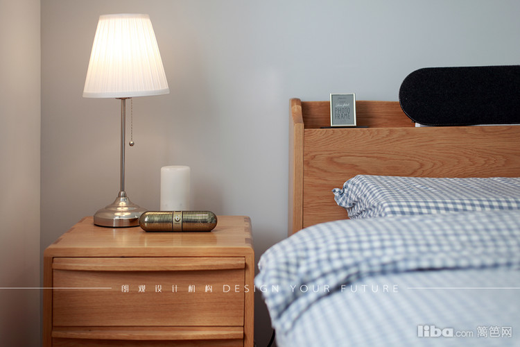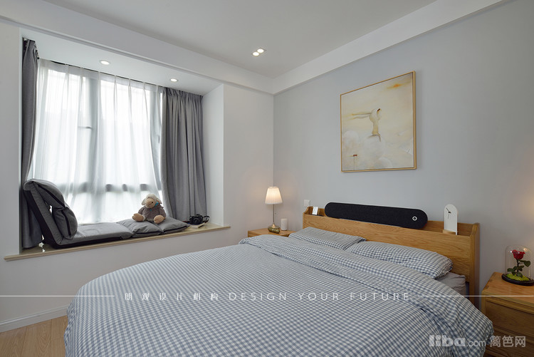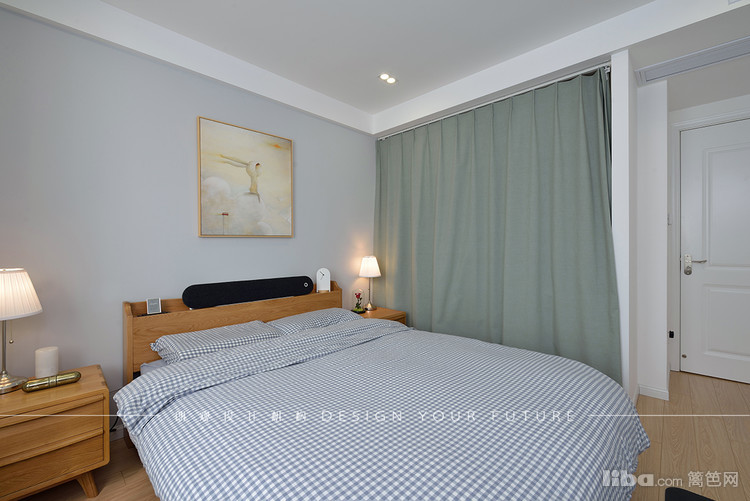 卧室延续了清爽muji风,开放式衣橱使用布帘遮挡。