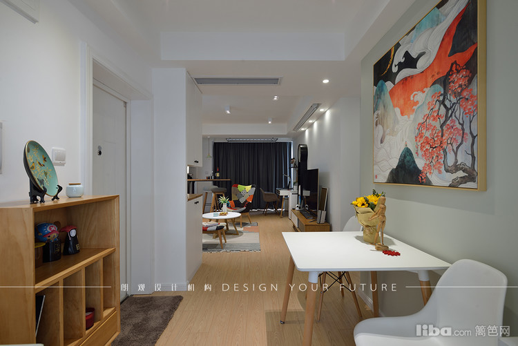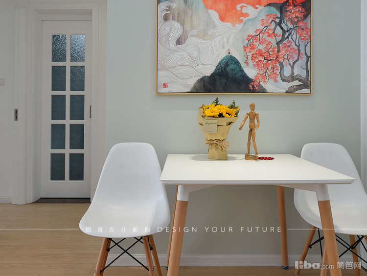餐桌上方的装饰画让进门处眼前一亮,小型餐桌对于年轻人来说足够使用。