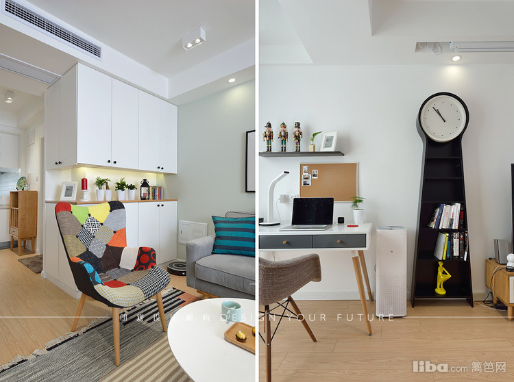 muji风的客厅清爽但不简单,日式的茶几搭配布艺的沙发椅显得年轻活泼。休闲区和办公区恰到好处不仓促。