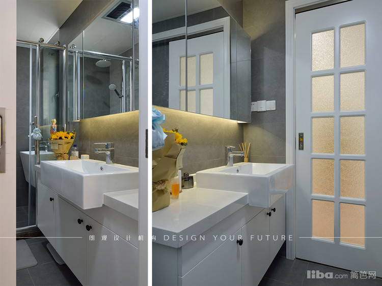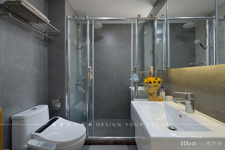卫生间设计以简洁实用为主,白色和银灰色的色调也很适合男生。