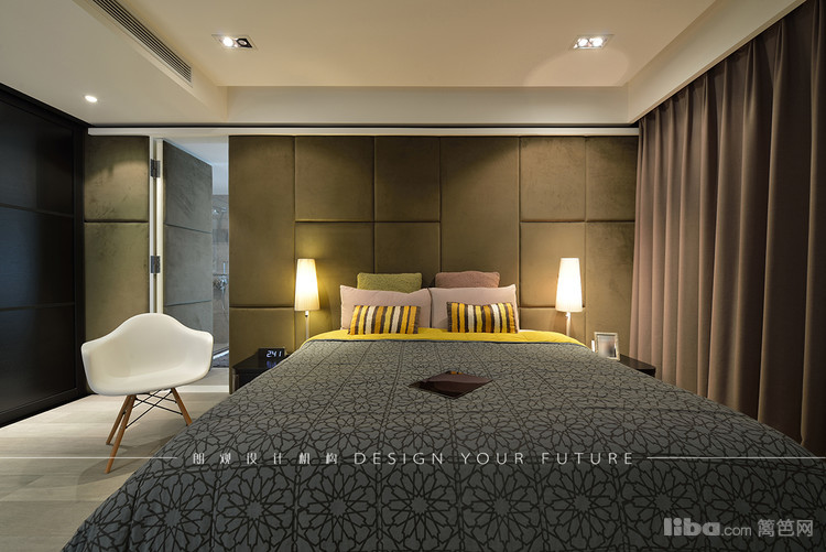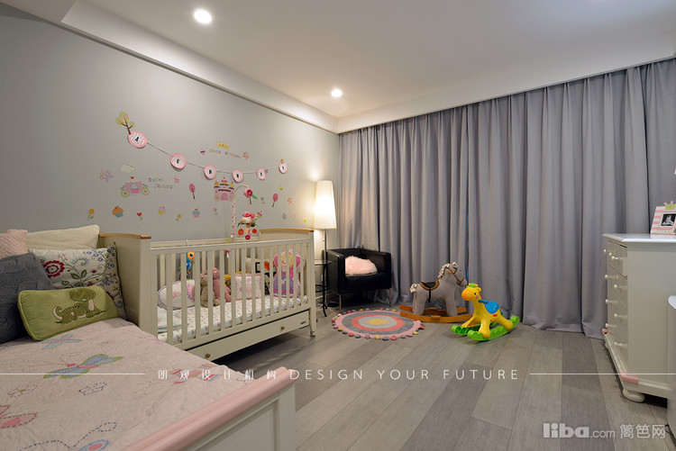 主卧墙上的软包材质在舒适空间的基础上也具有隔音的效果,卧室门与墙融为一体,墙体采用不同颜色,不会视觉疲劳。 次卧是婴儿房,整体采用清爽明亮的环保涂料。设计可爱,实用性强