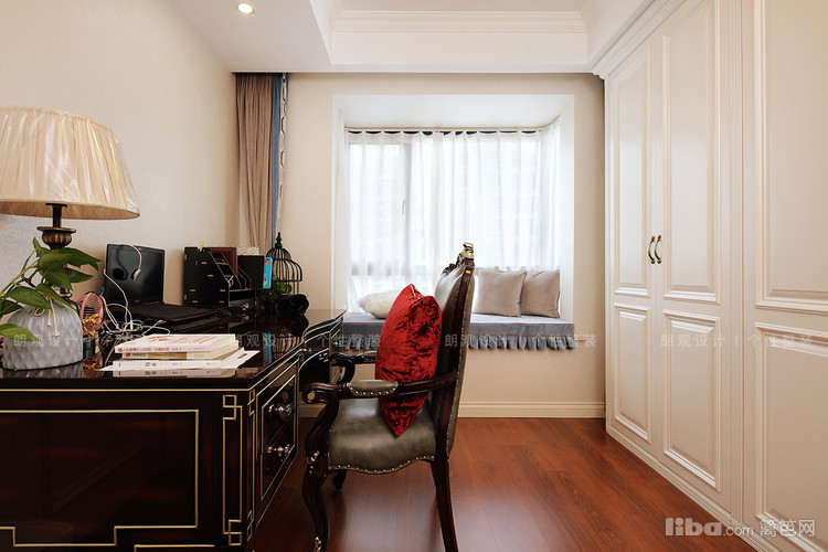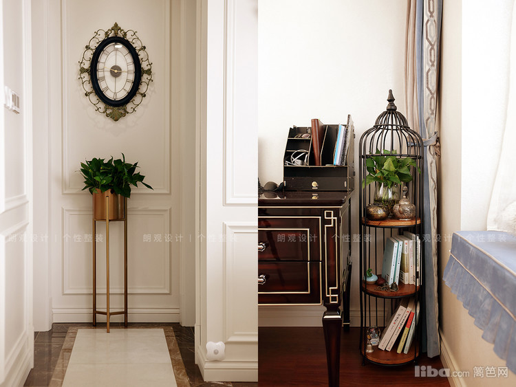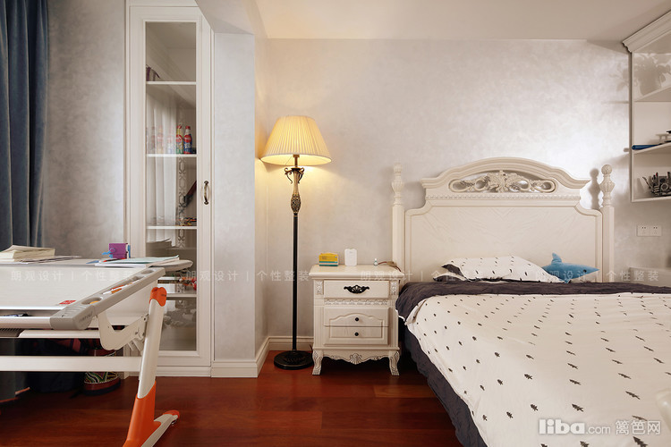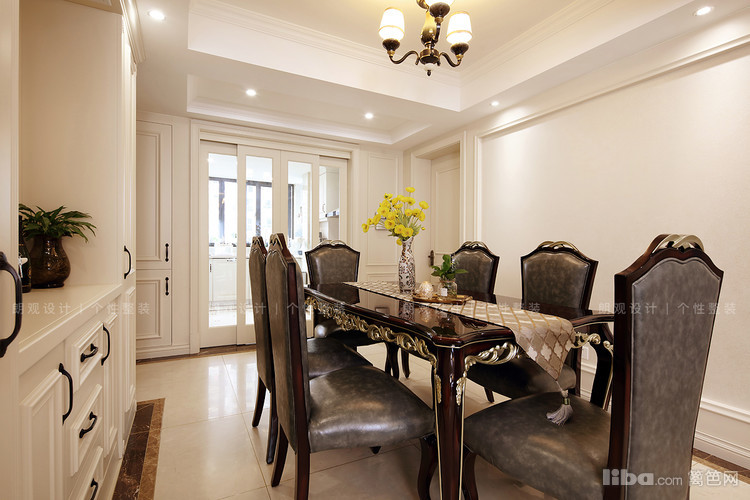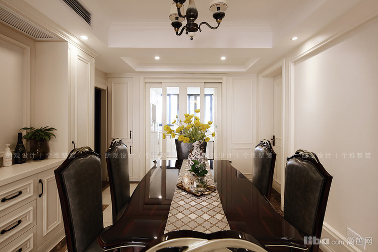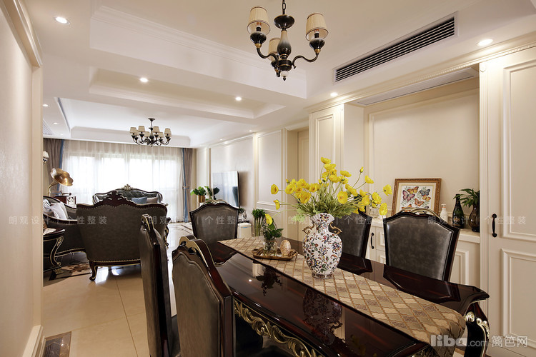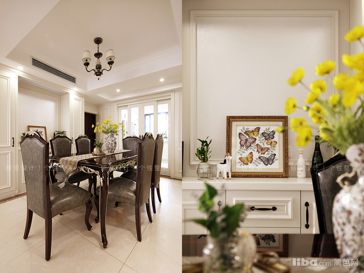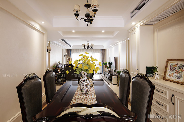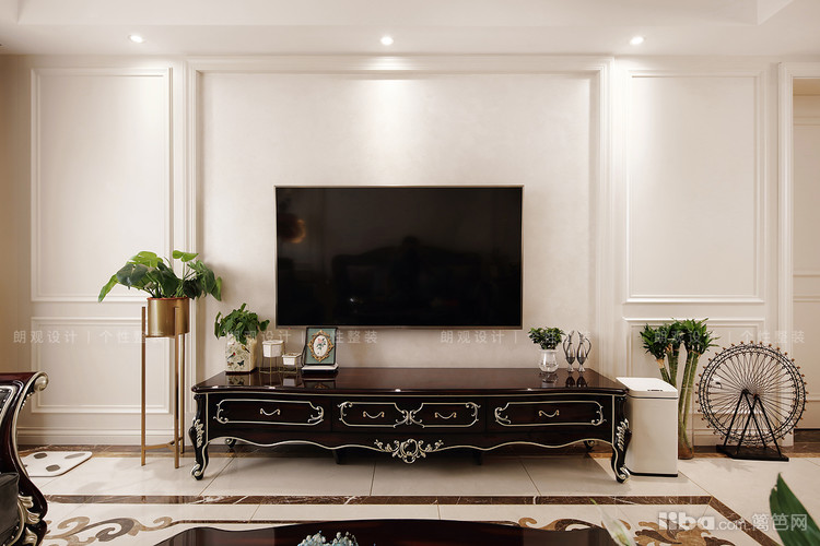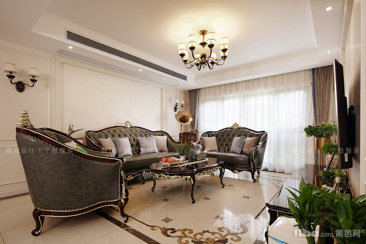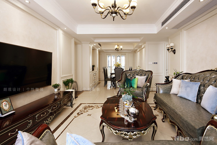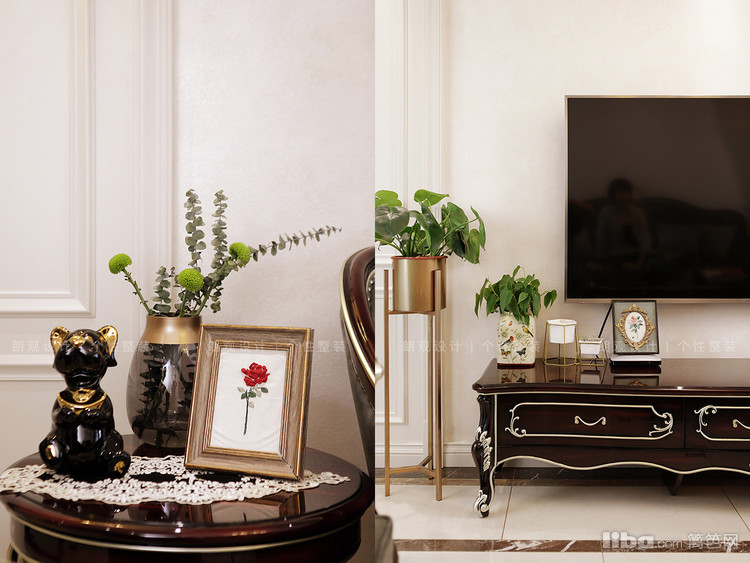 本案定位欧式新古典风格,通过护墙板、艺术涂料饰面。搭配新古典家具,家具既有尊贵格调,整体不张扬