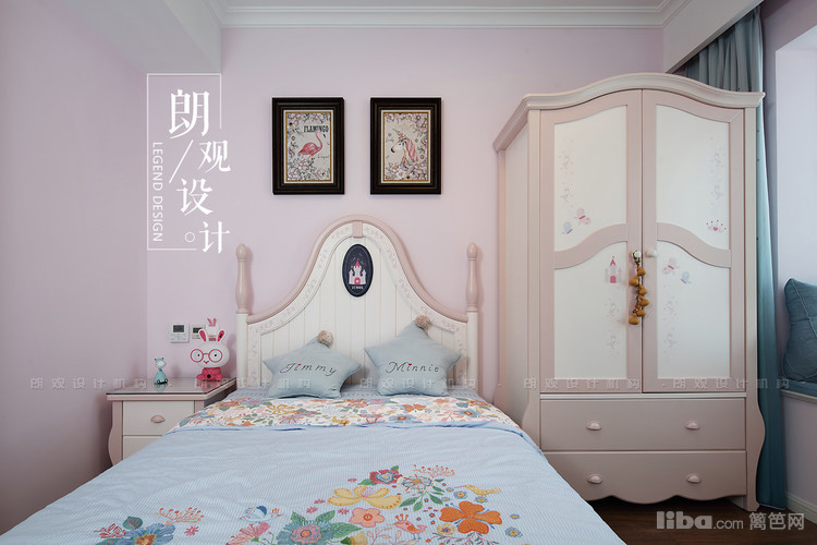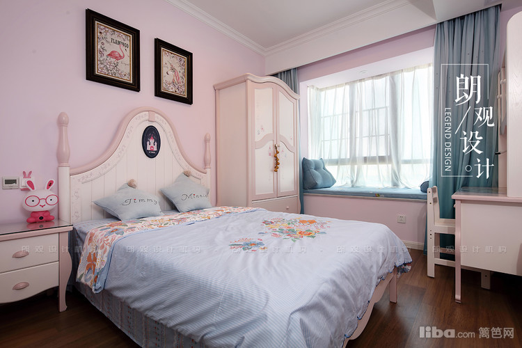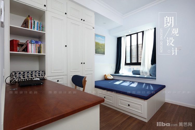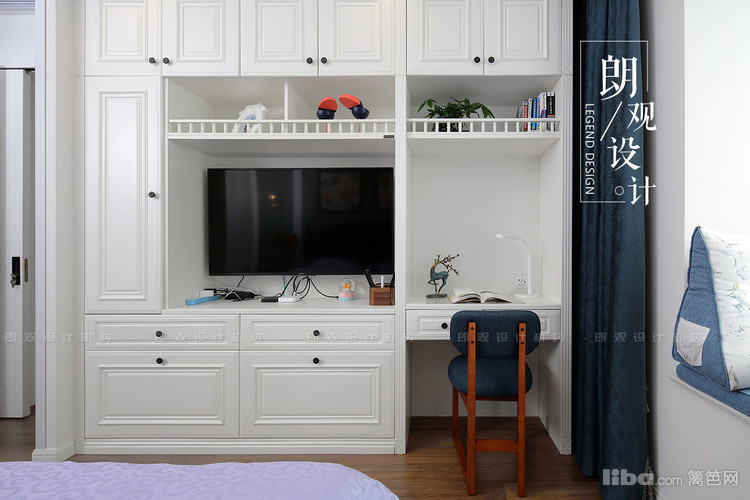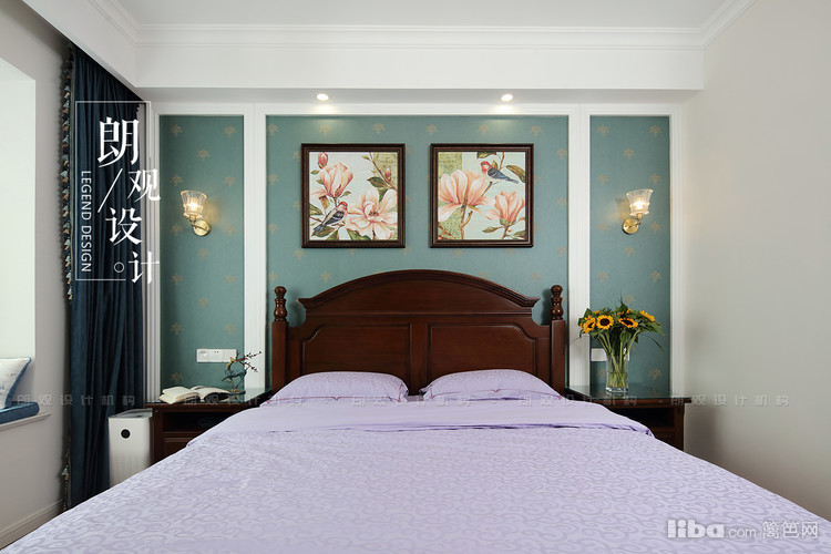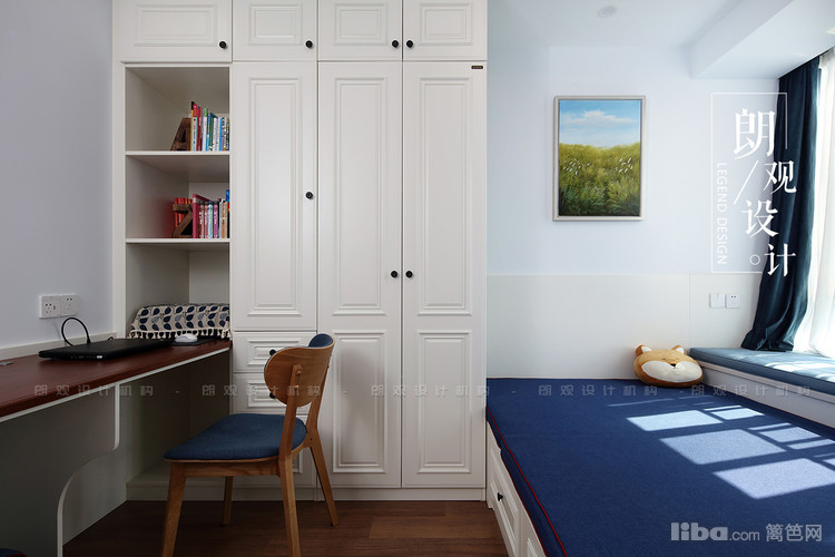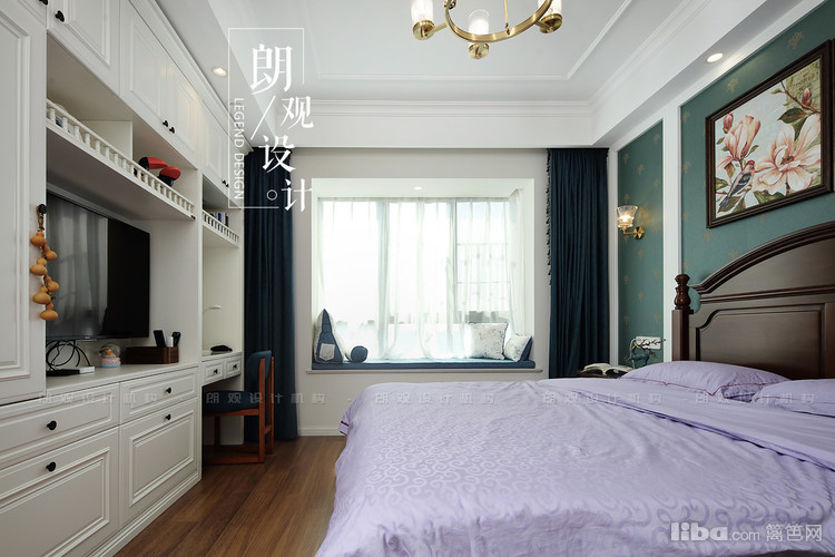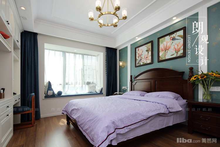 主卧的绿色墙纸配白色线条,以及经典的美式风格的实木床,显得比较大气。同样主卧也是从实用和储藏功能上考虑了比较多的储物空间。