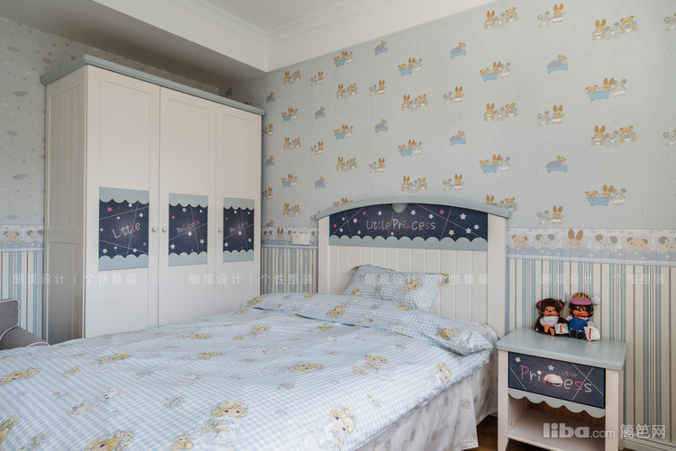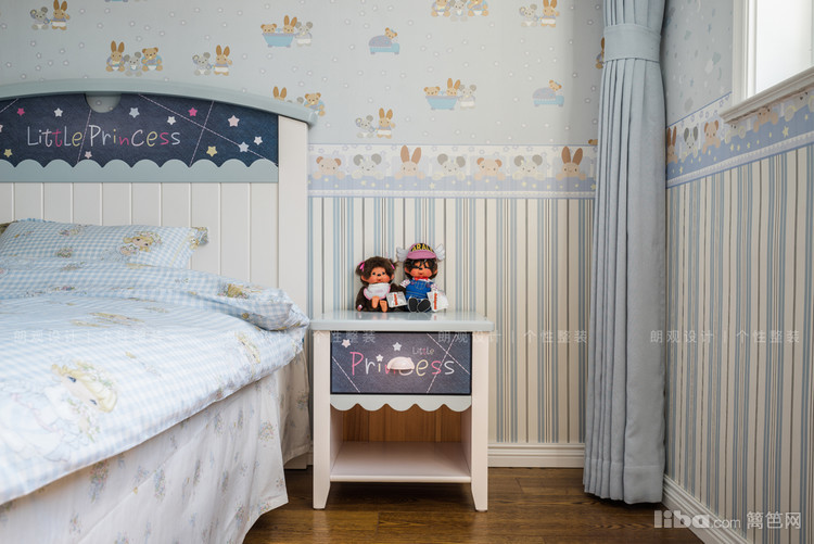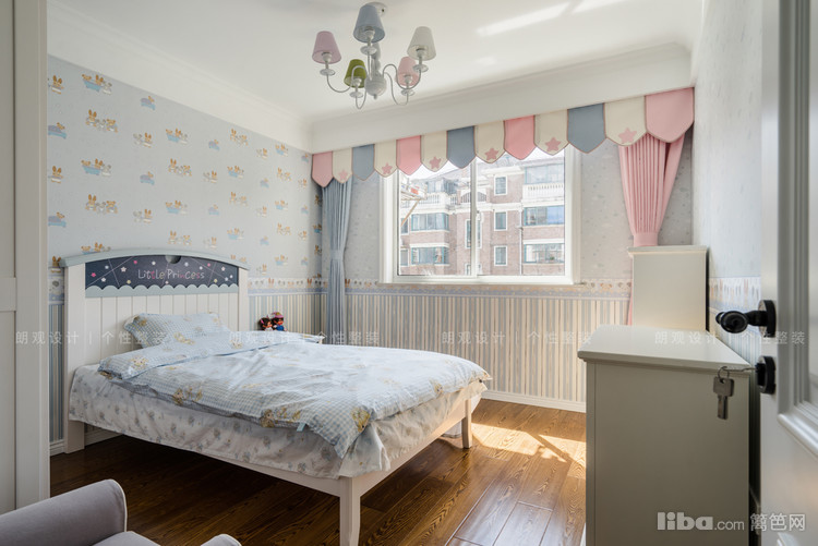 主卧家具与外面的餐桌椅一样,采用的木质,整体空间暖色调为主,自然温馨。儿童房选用浅蓝色壁纸,窗帘粉色与深蓝色进行点缀,为空间注入一份活力。