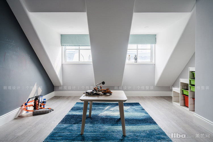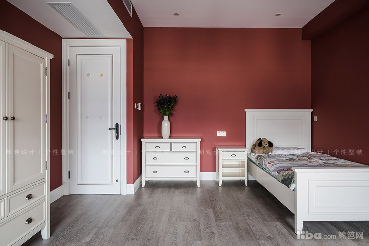 二层主卧空间低调柔和的配色与品质家具,营造休息空间的简净高尚,彰显室内别具一格的审美格调。三层阁楼区满墙的曼彻斯特红与乳白的家具搭配相得益彰,为小朋友提供一个安静雅致的休憩空间。
