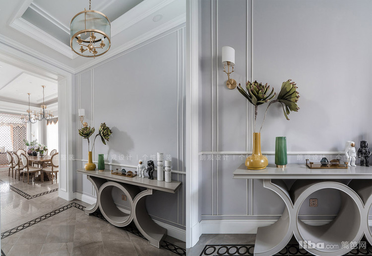 负一层被打造为男主人书房和影音室兼运动室,感受繁华都市内难觅的安宁和历久弥新的气韵,不突兀、不违和,仿佛天生就该同俱一体。玄关空间萦绕着静逸自然的气韵。