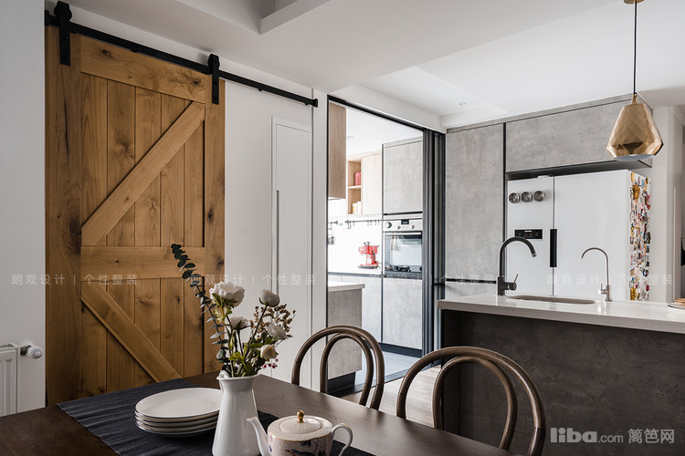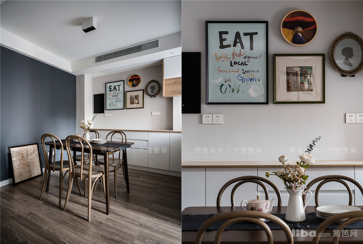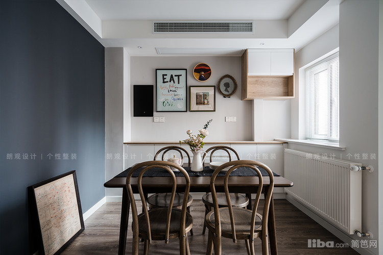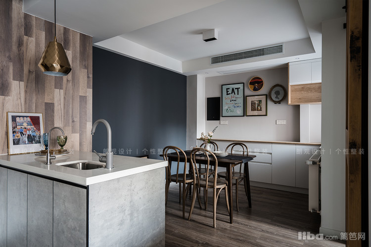 餐厅深灰和浅灰的搭配提升空间层次感,搭配实木餐桌餐椅,整体营造舒适的用餐氛围。