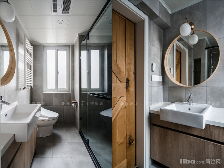 客卫在色彩上,延续餐厅的灰色系,同时融入木色,打造整洁有序的卫浴环境。
