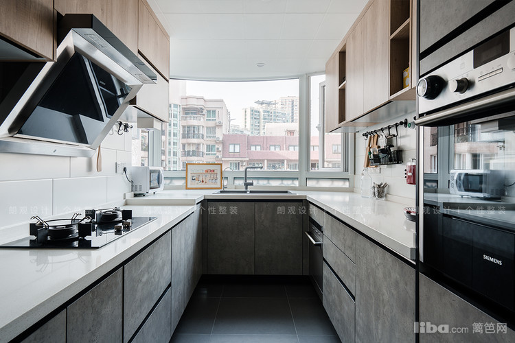 上下橱柜,超大收纳空间,以及嵌入式烤箱,采用隐藏式收纳设计,维持视觉干净清爽感。
