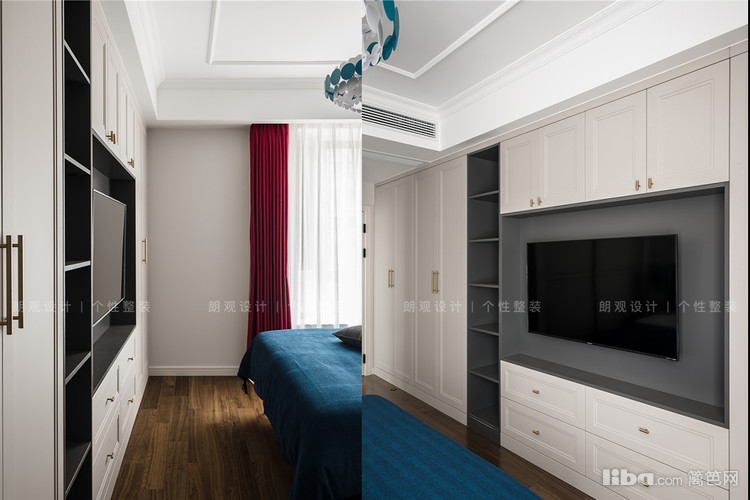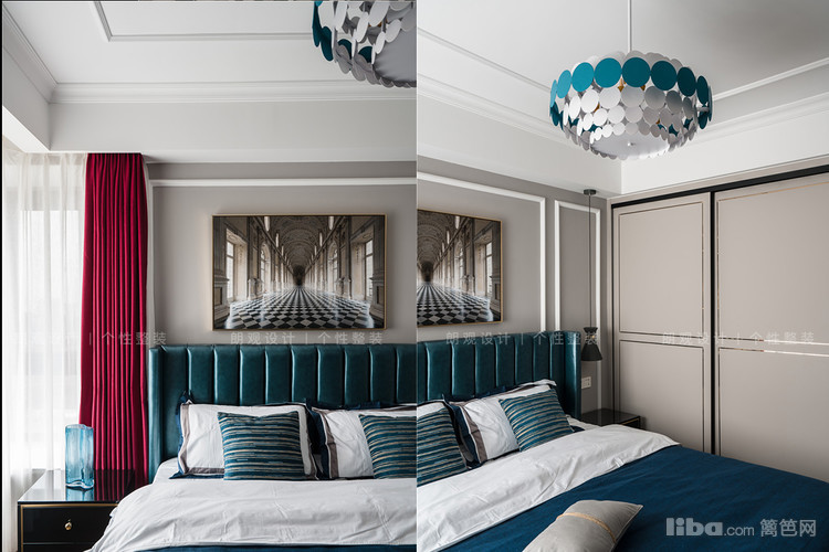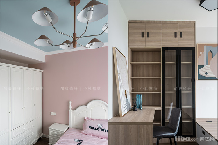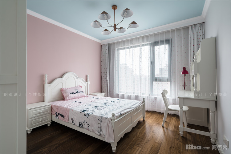 主卧风格定位为美式轻奢,优雅的线条感,品质舒适的家具,独特的色彩搭配,都是主人热爱生活,追求质感的见证。儿童房清爽的粉色和蓝色,搭配公主床和斑点窗帘,为孩子营造一个单纯的小世界。