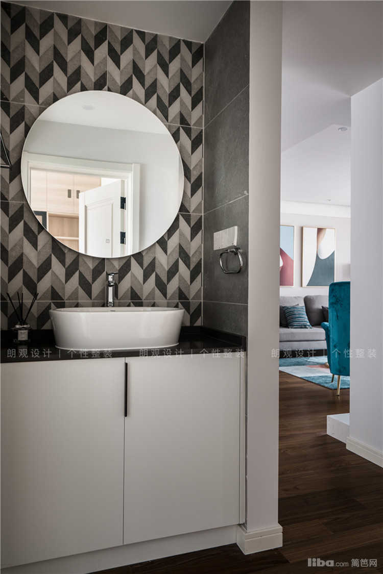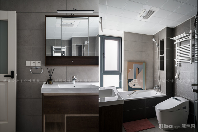 主卫位于主卧套间内,色彩延续了墙体的灰色系,设计风格则简洁明了,没有过多的装饰,以实用性、空间合理性为主。次卫为了提高使用效率,做了干湿分离设计。
