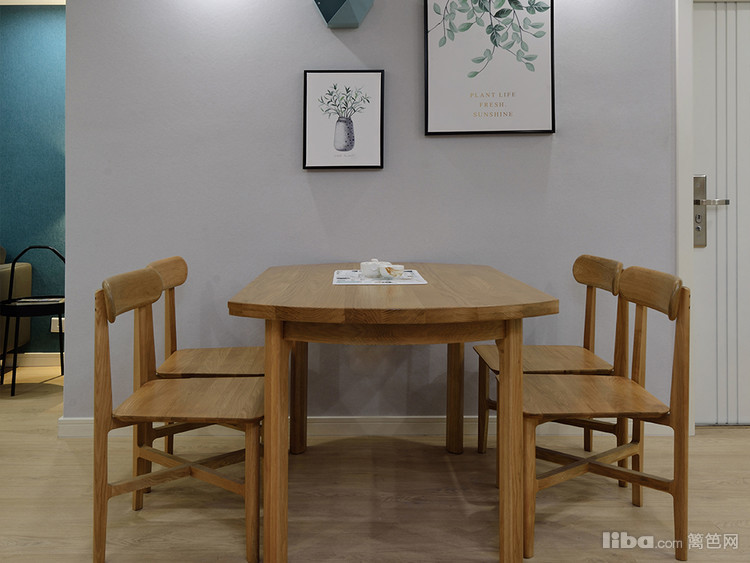 以原木为主的北欧风,由于楼梯位置,导致没有餐厅,通风不理想,空间分割比较零碎,所以设计修改楼梯