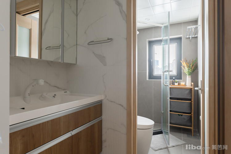 卫生间的设计是干湿分离,干湿分离让卫生间的功能可以同时被使用,洗手台和洗浴区分开,让这一空间的可行性更加高效
