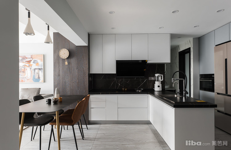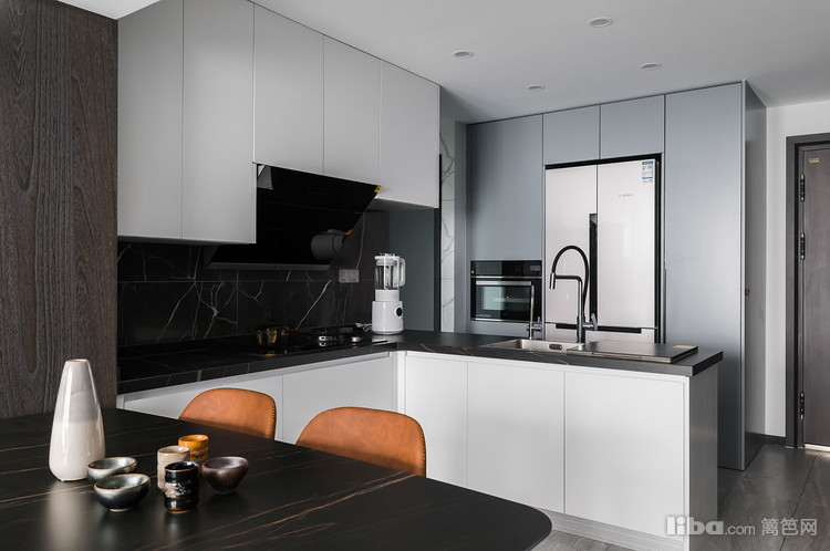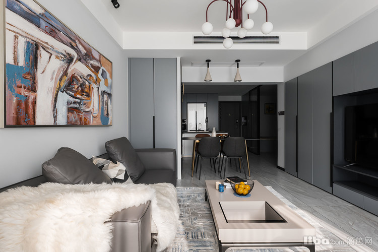 整体色系以灰色为主,用涂装板及金属作点缀,保持整体调性的同时增加层次感,营造更高级的空间氛围。