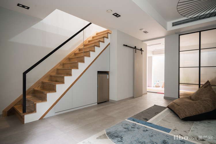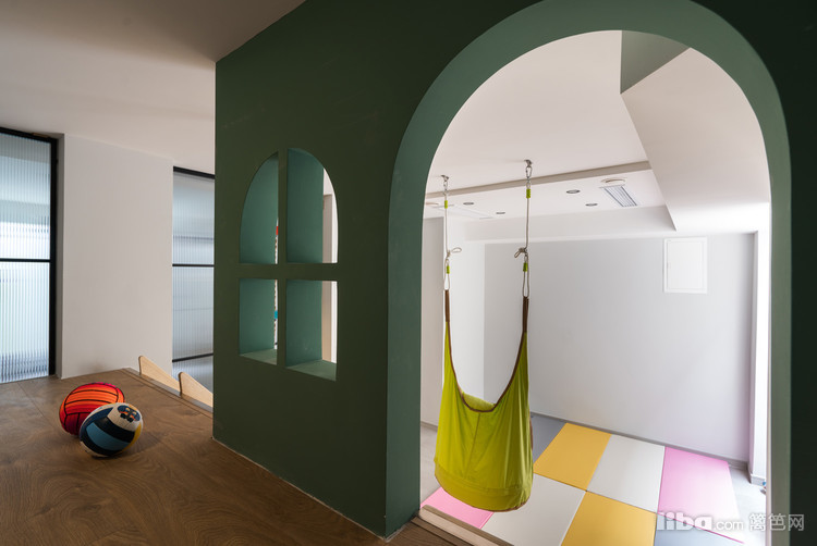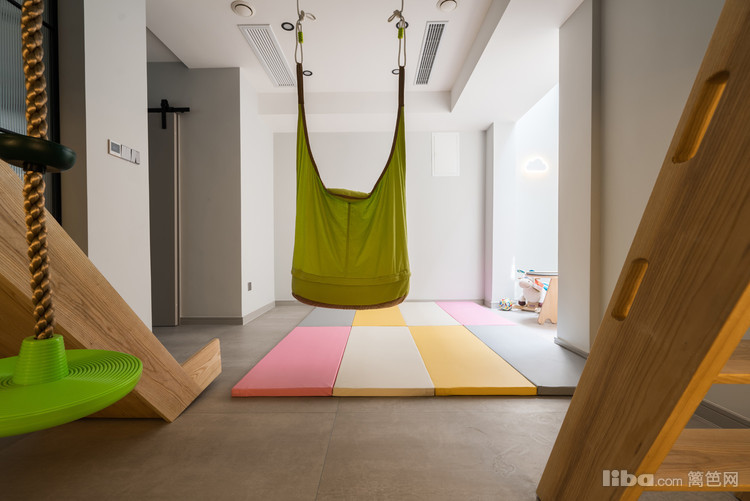 用楼层在功能上做了分隔,负一层主要是儿童玩乐区、休闲区、健身区,以休闲为主。