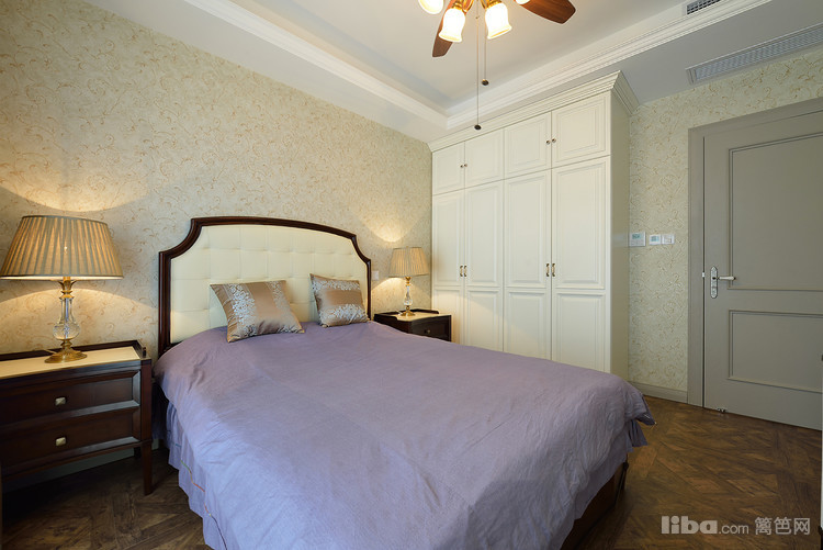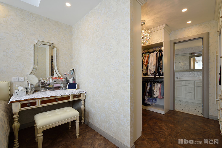 主卧打造成套房的形式,与主卫和衣帽间相连通,增加了实用性和私密性,墙面装饰墙纸与水晶灯的装饰营造出奢华浪漫的婚房感觉。
