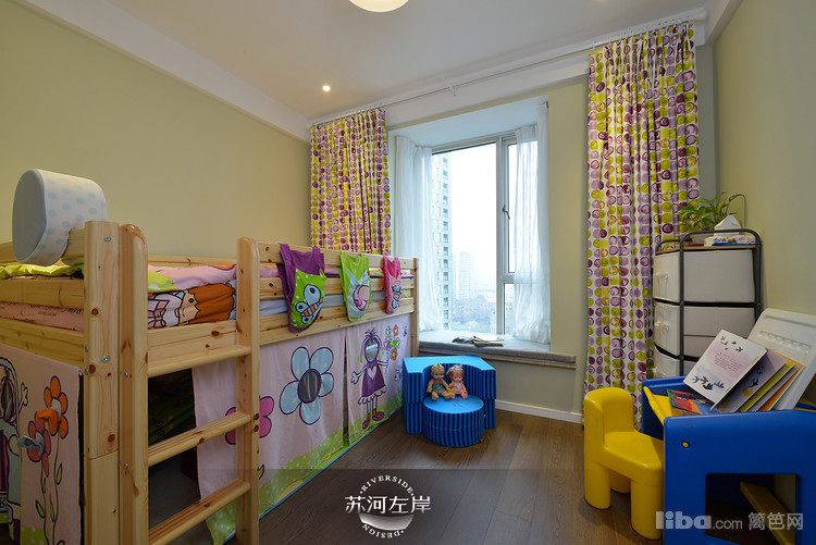 主卧做成套房,墙面全部采用涂料装饰,简单却不失温馨,两个宝宝的房子则充满童趣