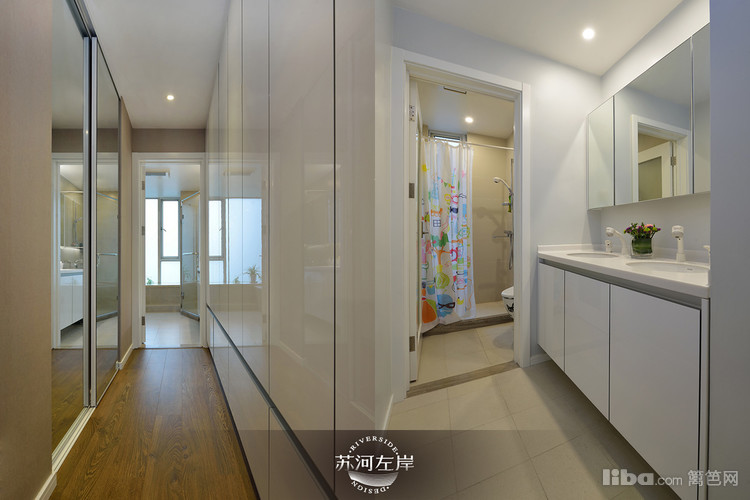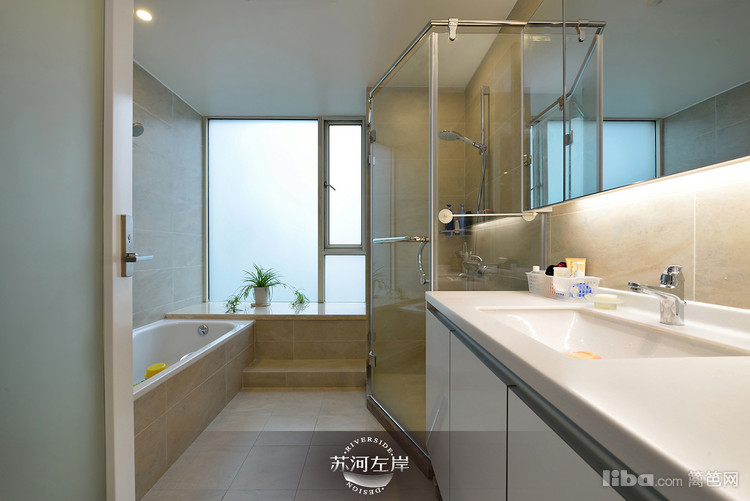 客卫采用干湿分离的方式方便了家人使用,主卫马桶移位后空间进行重新布局,使得浴缸和淋浴房同时存在,并且显得很宽敞