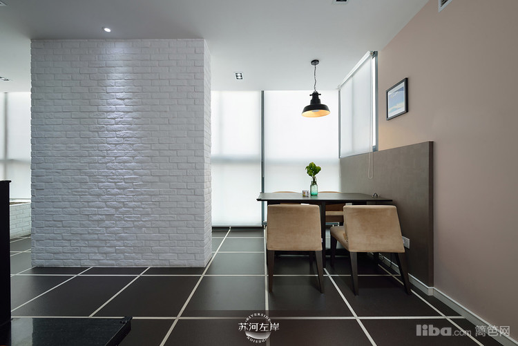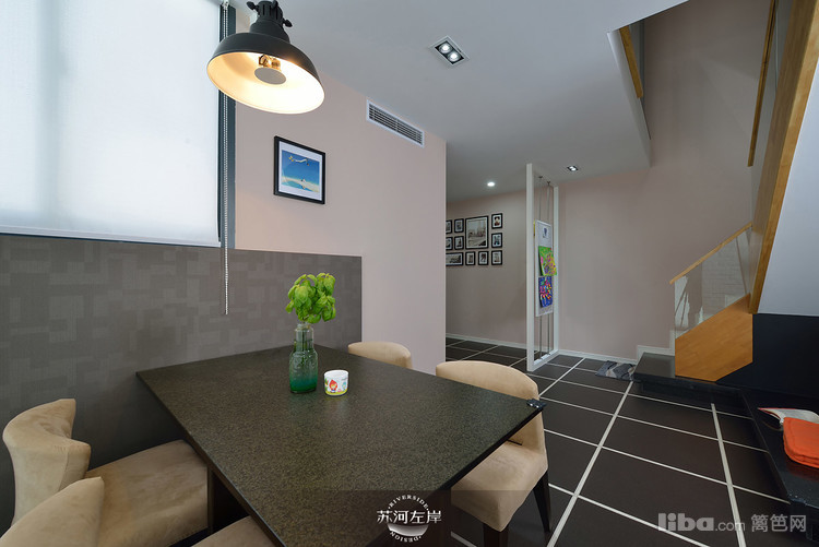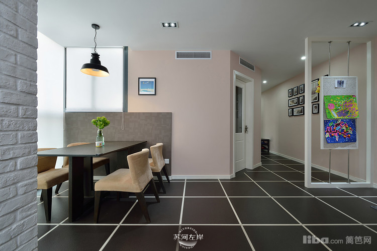 粉色的墙面让餐厅多了一份清新与活跃,黑色的餐桌与米色的餐椅则显得既简单又大气!