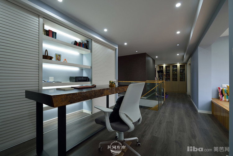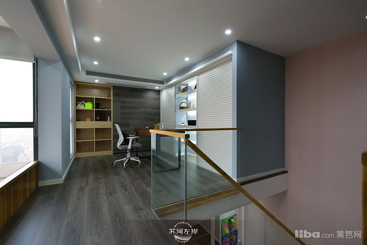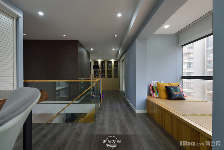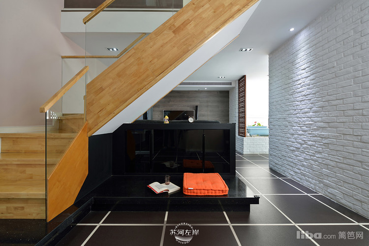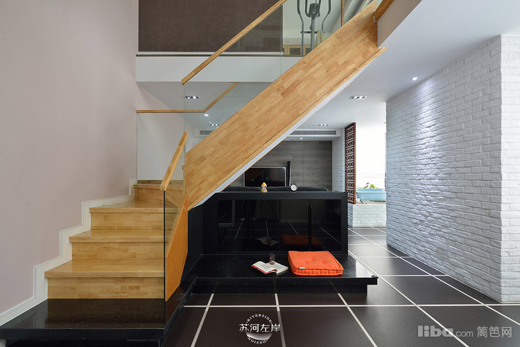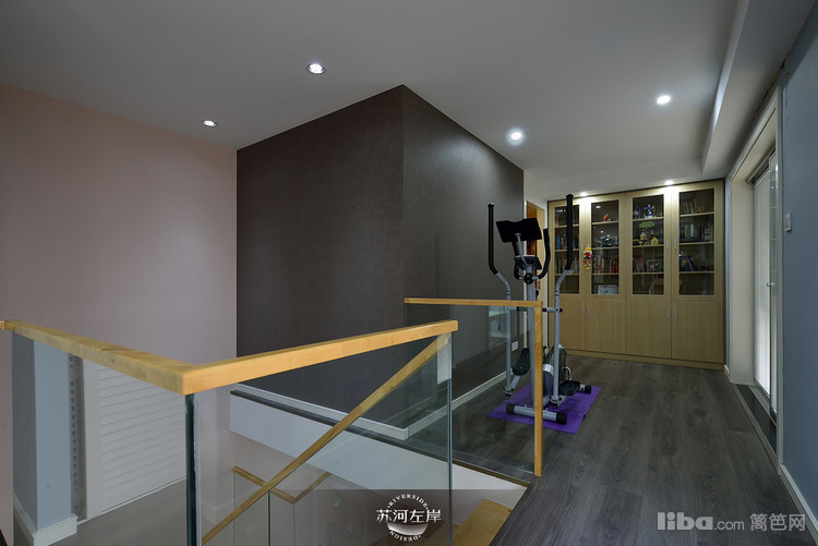 对于楼梯,主人选择了原木的楼梯并配上了钢化玻璃的扶墙,二楼的装饰则很好的在简约风格的基础上体现了现代感的气息。