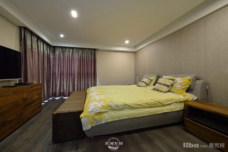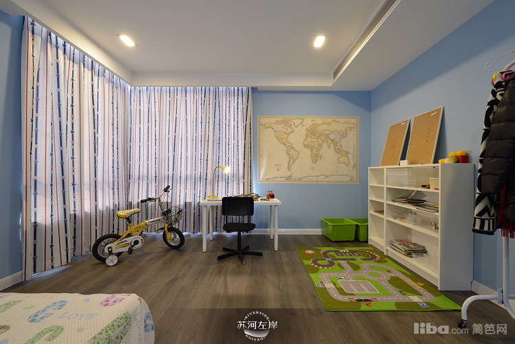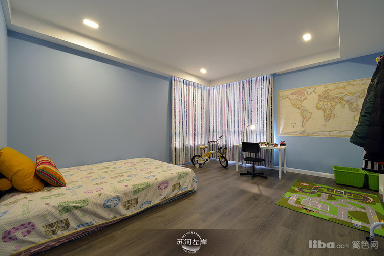 主卧没有复杂的吊顶和墙面设计,主人选择用墙纸来对墙面进行简单地修饰,同样达到了不错的视觉效果,浅黄色的床饰让卧室的色彩显得更加的明亮!儿童房的装饰给人十足的趣味与清新感。