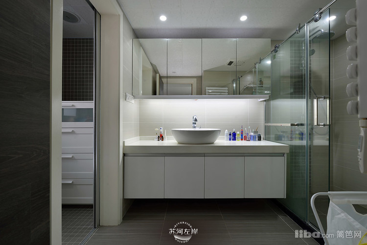 卫生间在色彩配置等方面继续延伸了现代简约风格的特色。