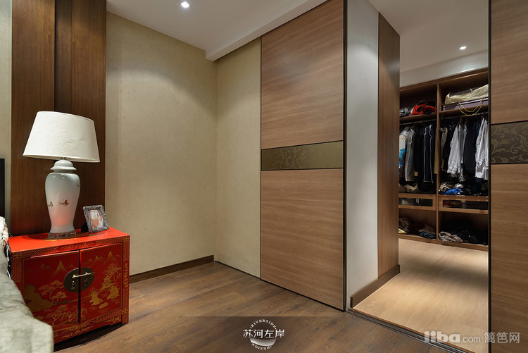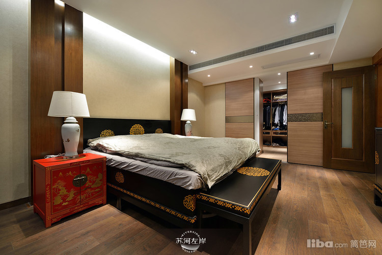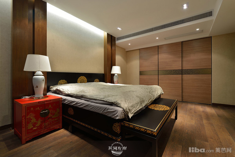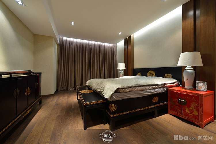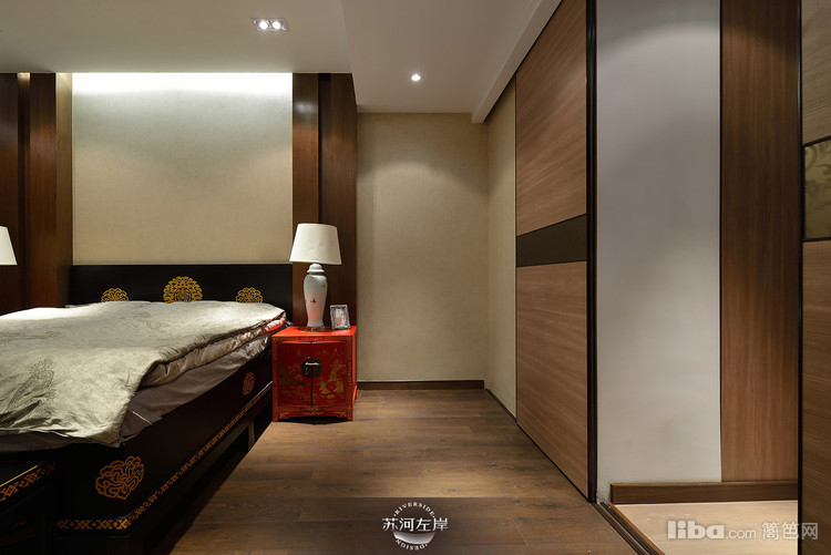 卧室红色的床头柜无疑是整个空间的亮点之一,给人很喜庆的感觉。