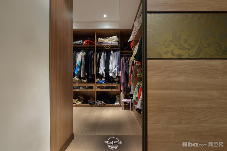 白色的花瓶和红色的花艺搭配出了很美的效果。主人还在卧室旁边做了一个衣帽间!
