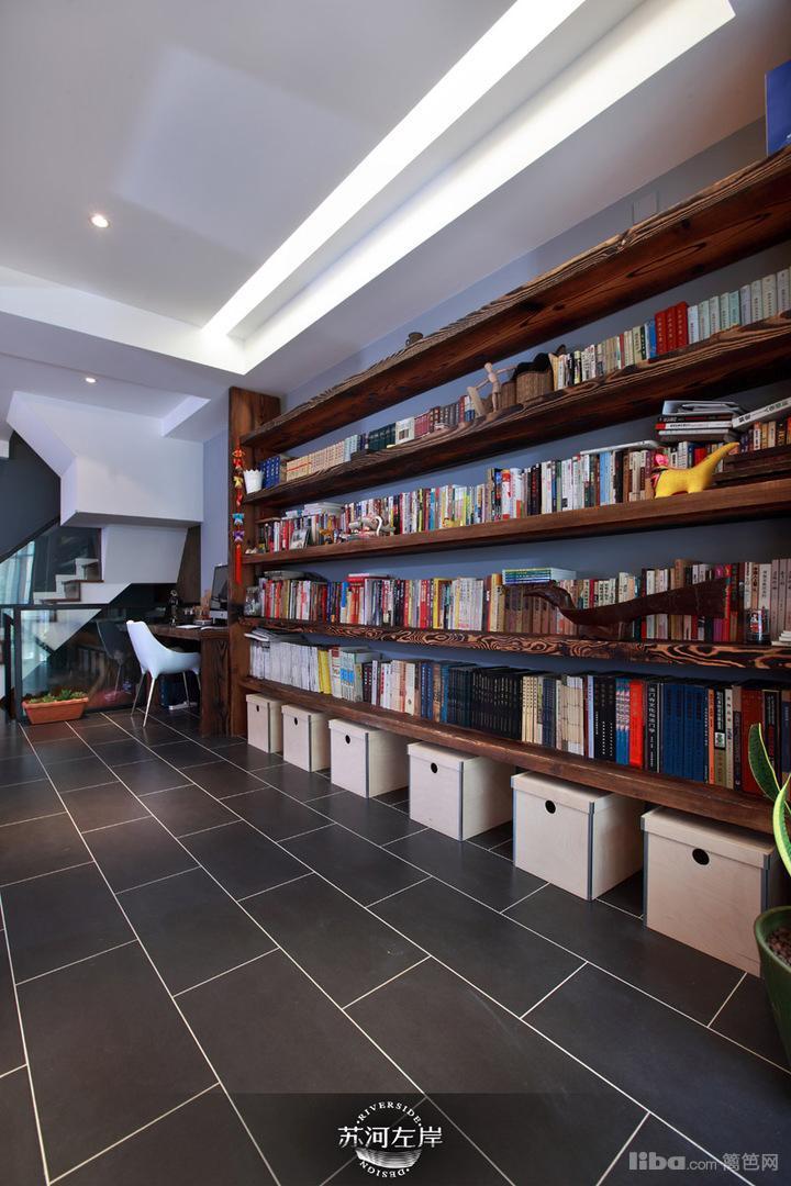 书房区域采用大面积敞开式书柜,配以中式做旧的座椅,不仅满足了主人的实用需求,也让中式中融于了现代的元素。