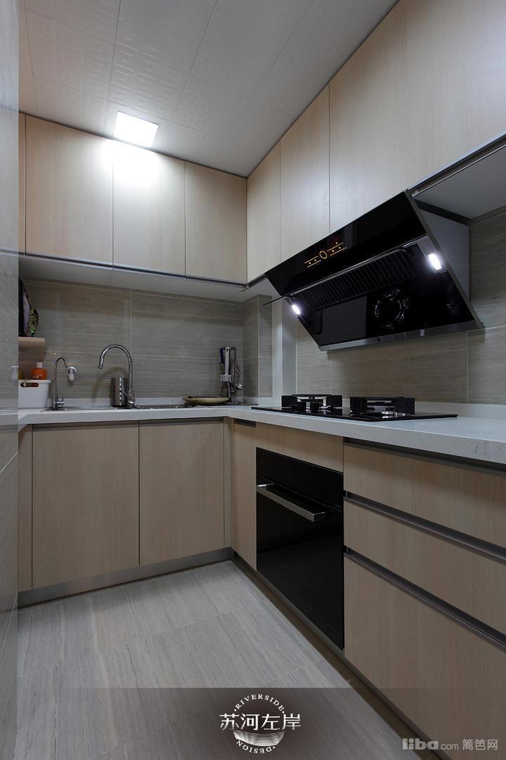 厨房的橱柜门板以简约的造型,与整体风格呼应。