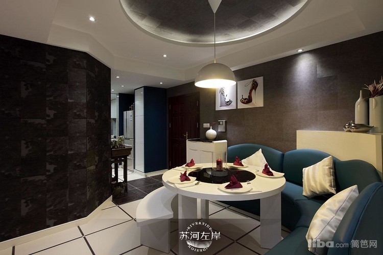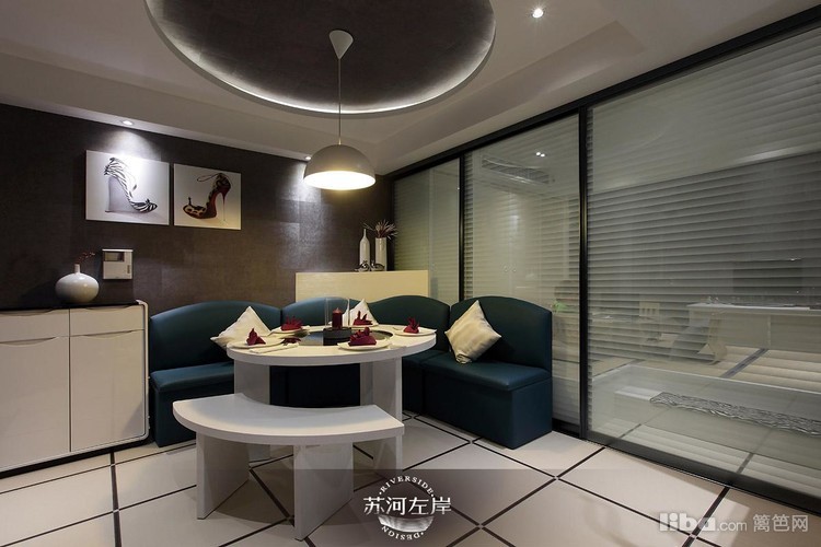 餐厅户型卡座充分利用局部空间,也成为餐厅的一个亮点,墙面的装饰画则更加凸显业主的个性与品位。