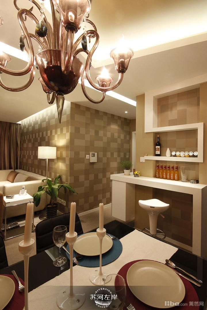 黑色的餐座椅与暖色调的蜡烛吊顶烘托出低调奢华的温馨氛围。