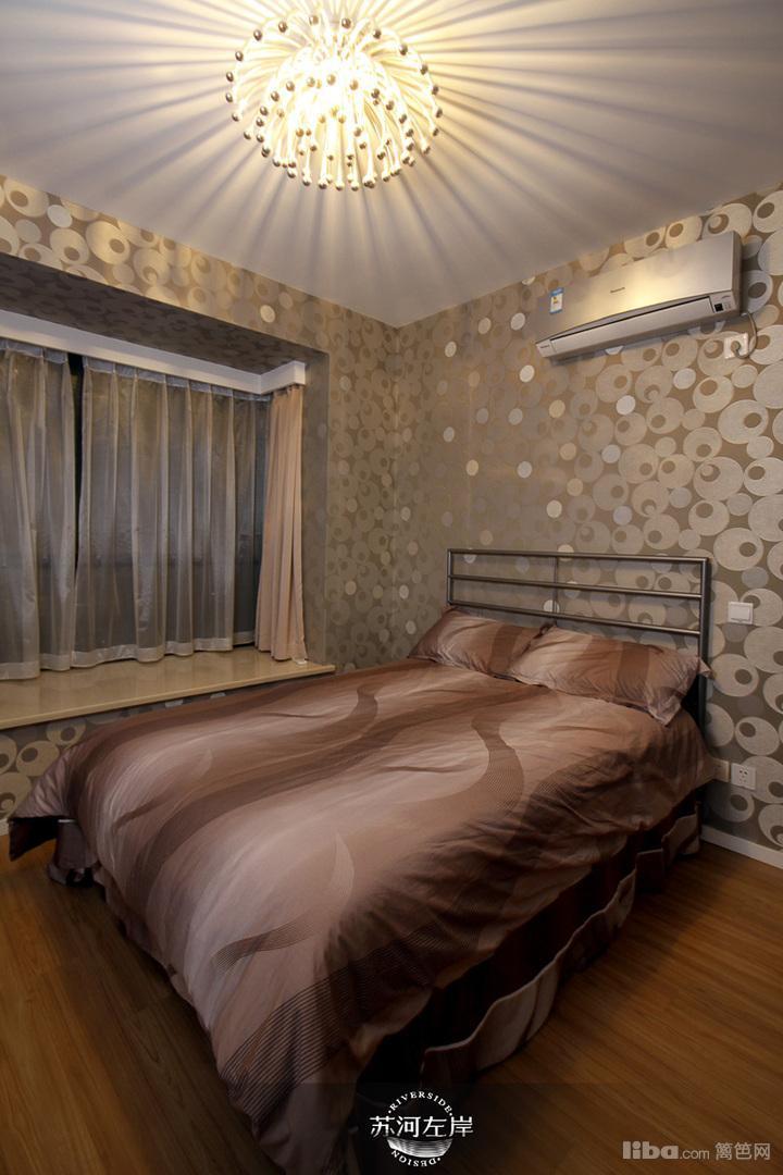 咖色的墙纸,咖色的沙发,还有咖色的窗帘,形成整套风格色调的同意。几何形状的图案彰显时尚个性空间。