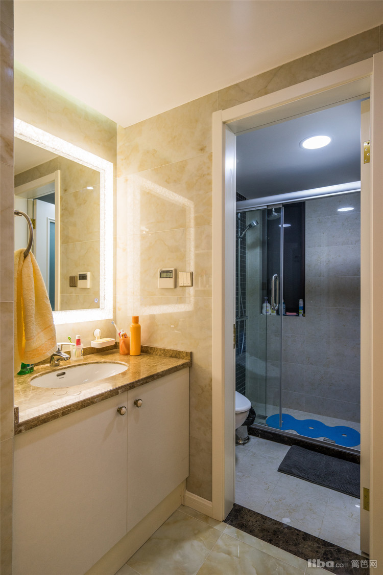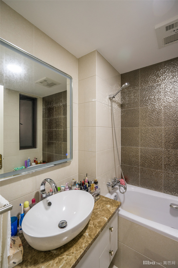 两个卫生间分别设有浴缸及冲淋房,满足业主的所有功能需求。梳妆镜周围的灯圈,使环境动人妩媚,处处打动人心。