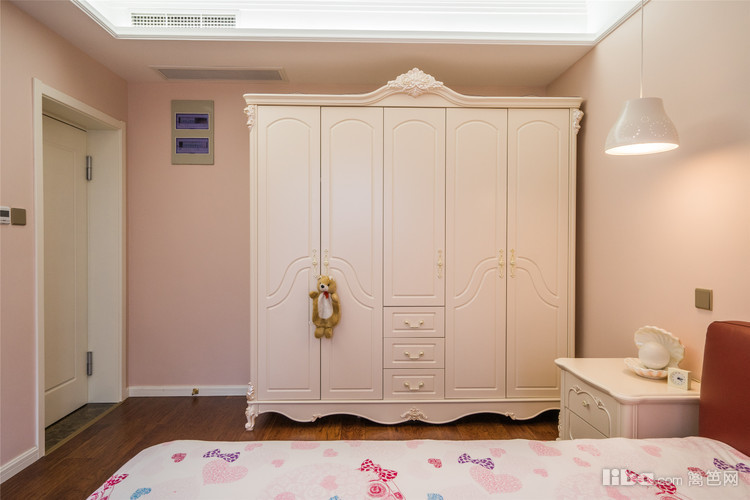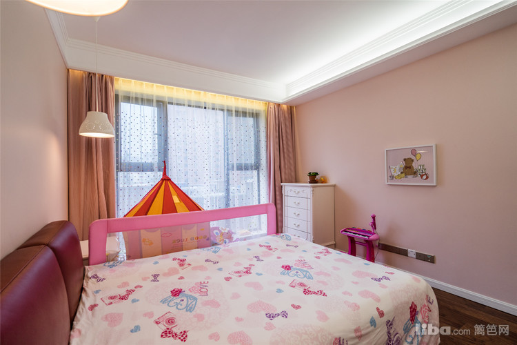 设计师别出心裁地打造了一个粉扑扑的孩童房,不仅不显得格格不入,还为这套温馨的卧室注入了满意活力。