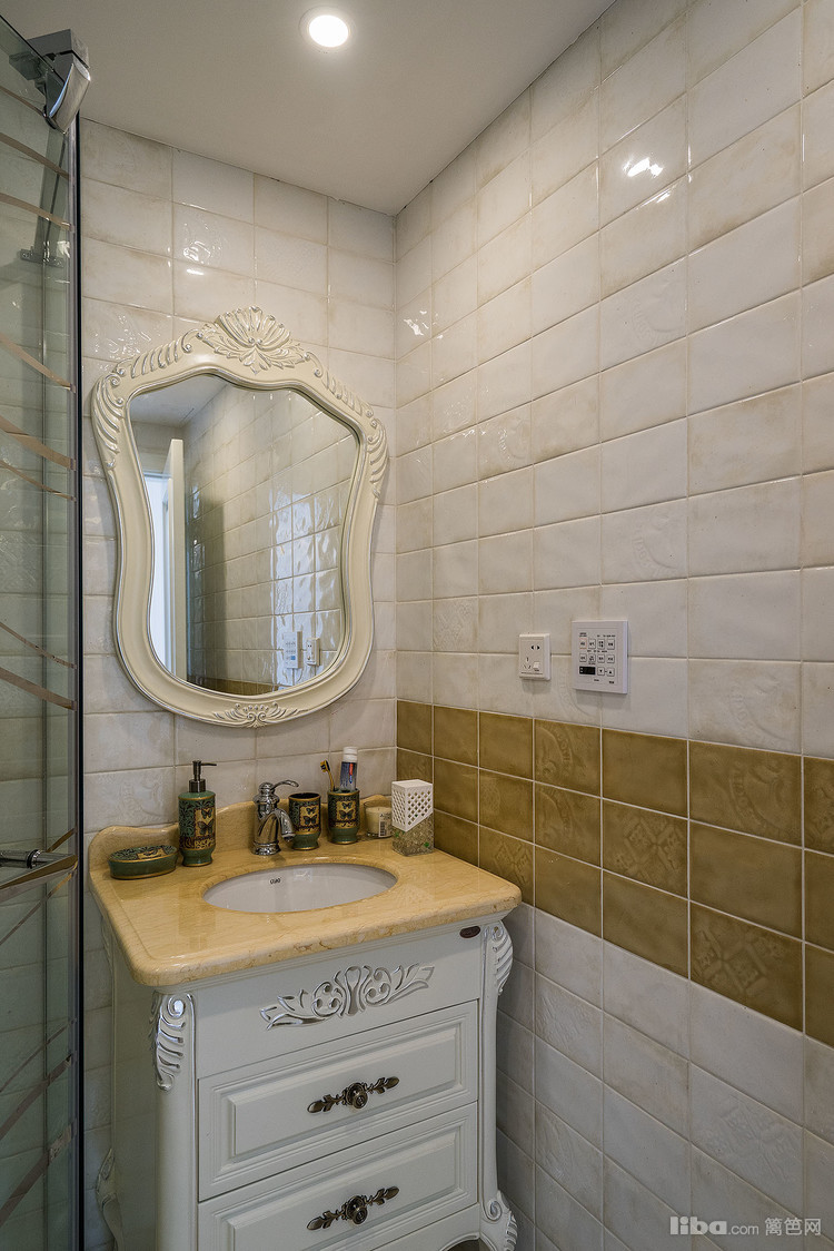 卫生间色彩淡雅、梳妆镜造型优美,分别设置的浴缸及冲淋房,能够满足所有的功能需求。