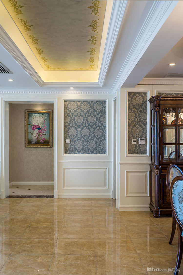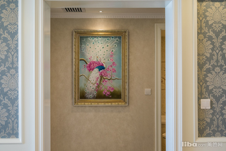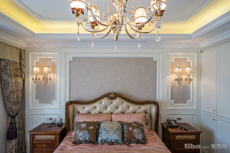 卷草舒花的墙纸与软包为意大利洛可可风格的经典元素,意式风格常用弧线和S形线条糅和当代简约时尚的生活方式,形成了意式新古典风格。