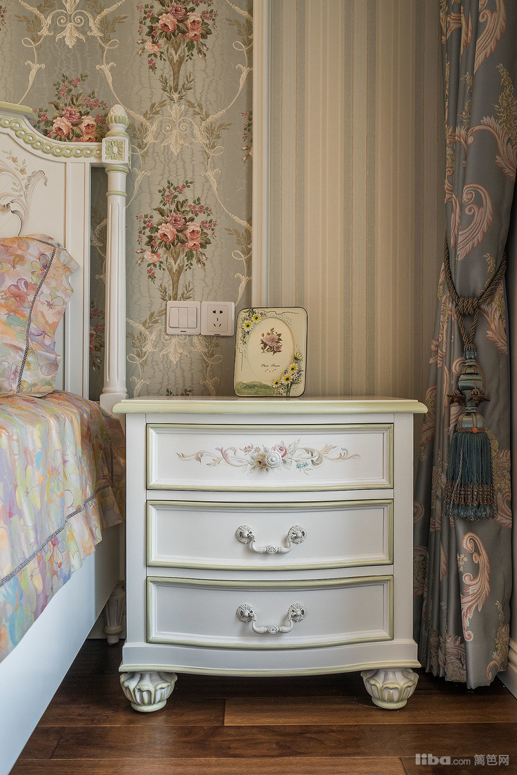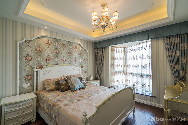 次卧选用淡绿的墙纸高贵典雅,仿佛居住在浪漫的花园中,让人感觉清新舒适。