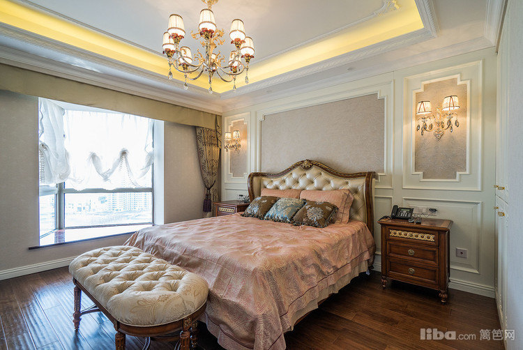 主卧选用温暖的浅烟红,在简洁线条的勾勒下,别有一翻浪漫温柔。