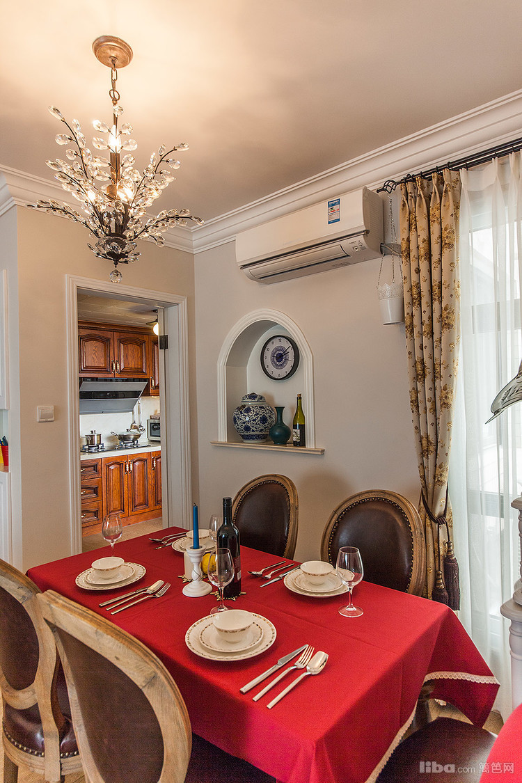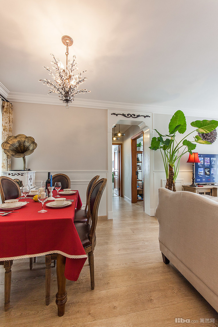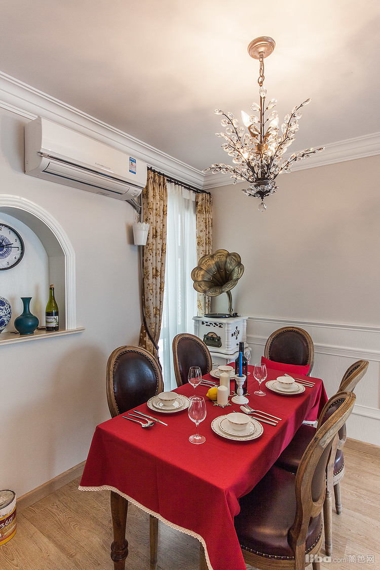 红色的桌布成了餐厅空间的亮点,呈现给大家的是大方优雅。