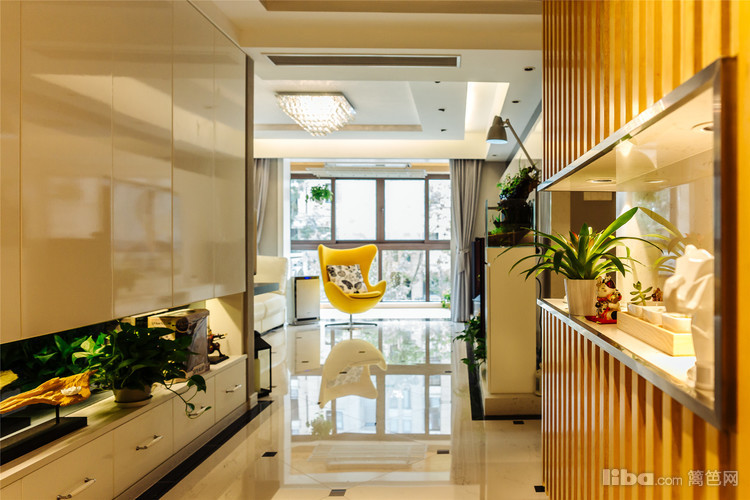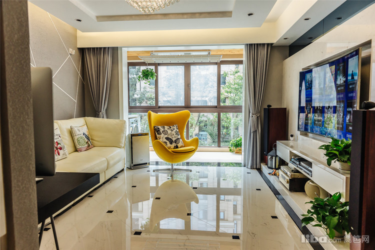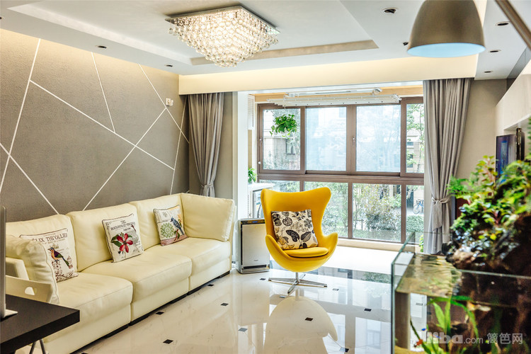 设计师采用现代简约风格的装饰手法,在线条的跳跃交回以及纯白与浅灰的低语中,营造出自然纯简的浪漫,如同月夜中的精灵公主,只需一袭白裙,就美丽得惊心动魄。
