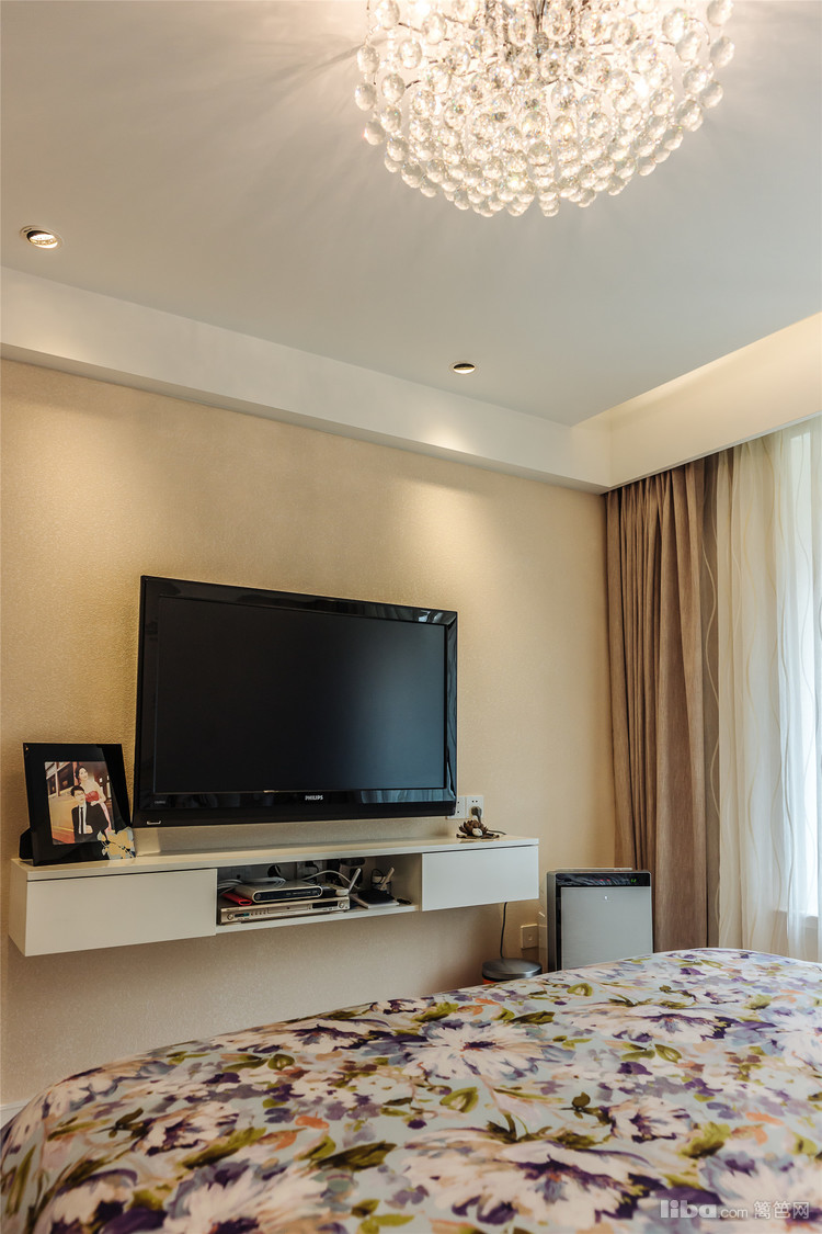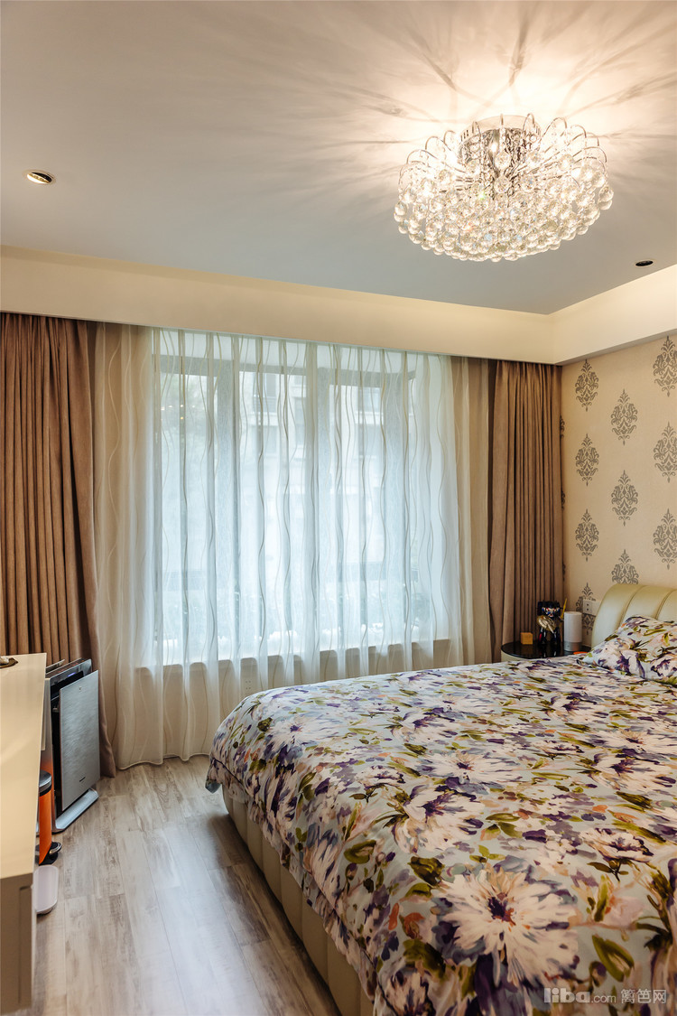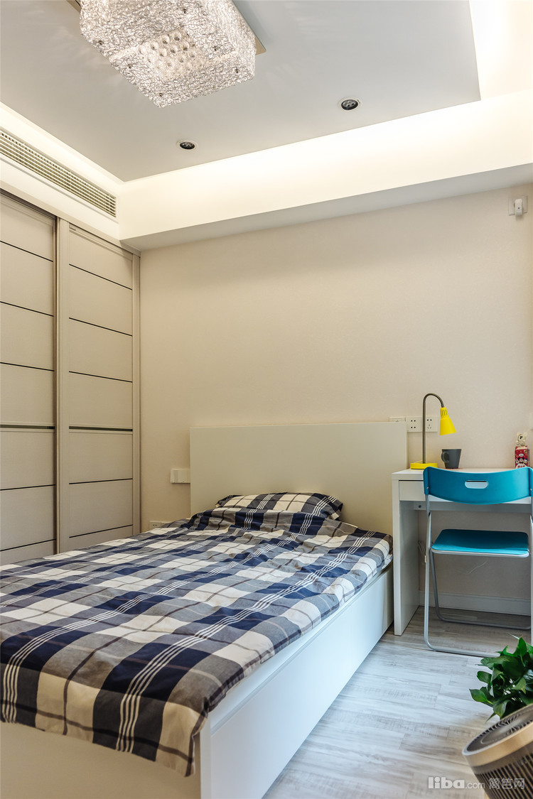 男孩房像蛋糕一样边角整齐的水晶吊灯,简单的书桌作为床头柜,朴实温馨。主卧中格子衣柜和花型墙纸相得溢彩。