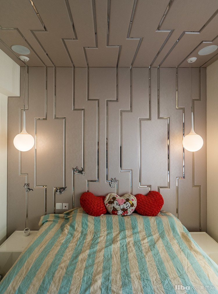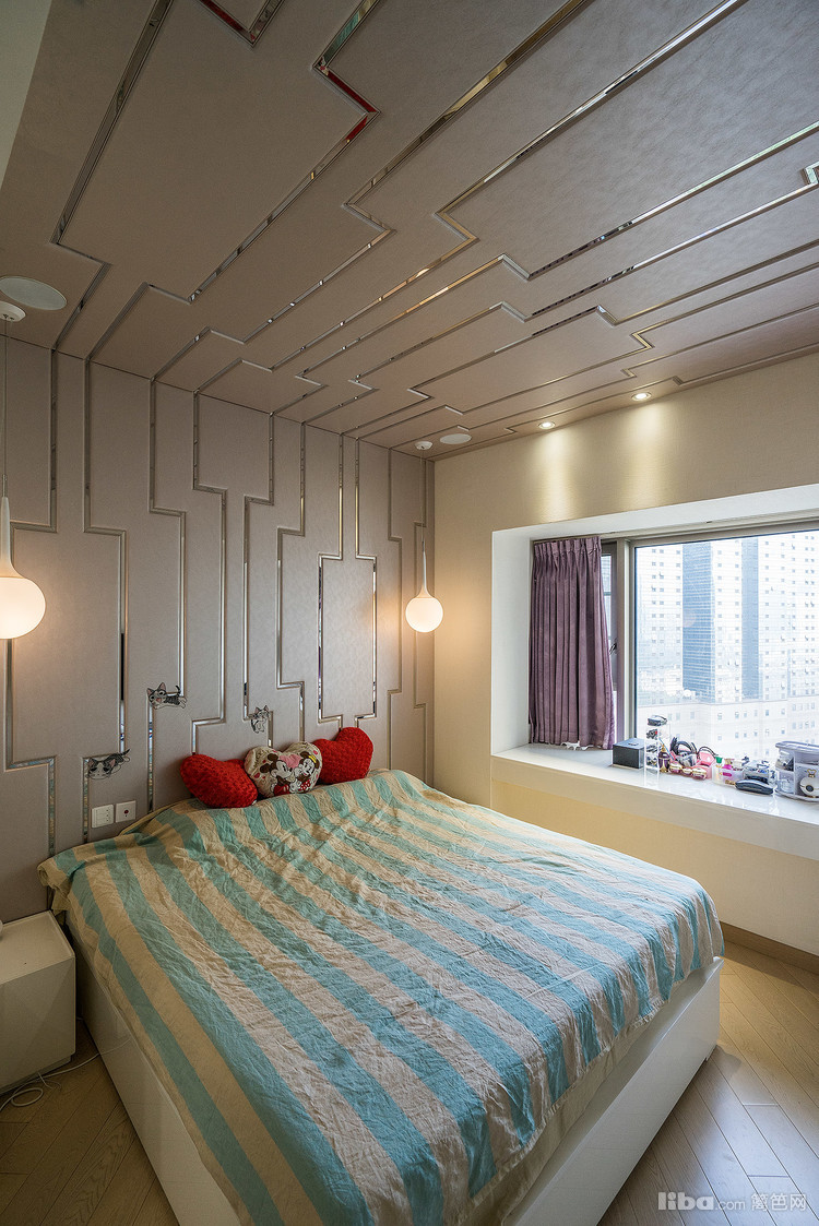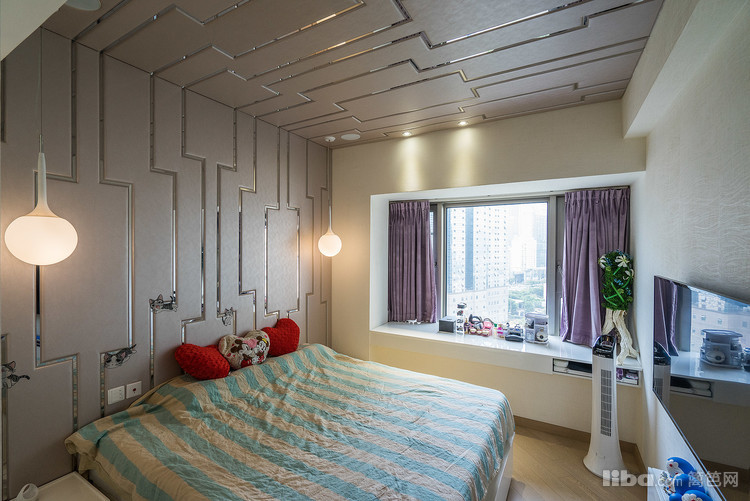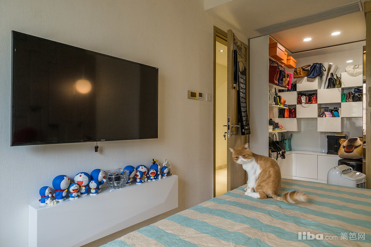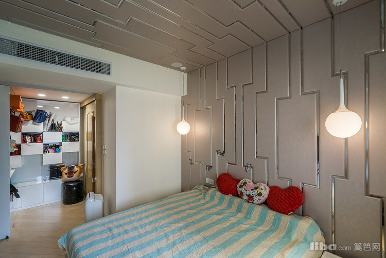 卧室内墙壁上有一处空间是设计师为女业主量身定制的储藏空间,所以利用了门后的空间专门给业主摆放私人小物品,真的是非常贴心的小设计呢,很实用!