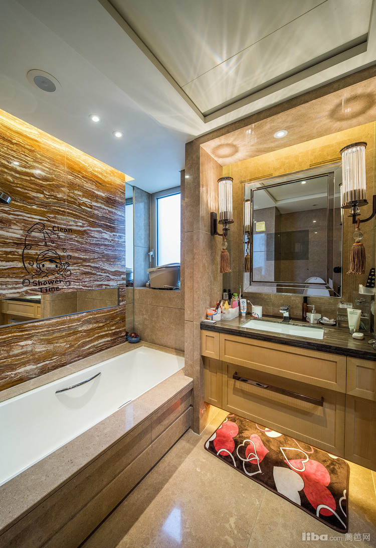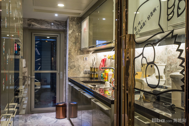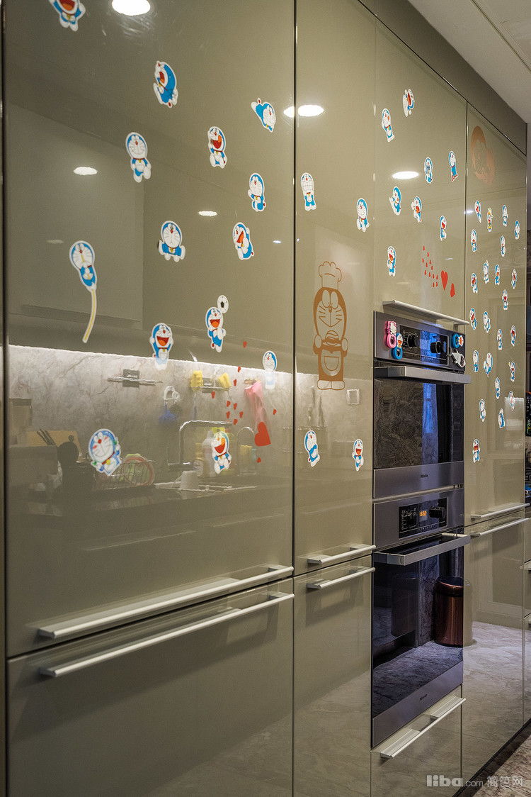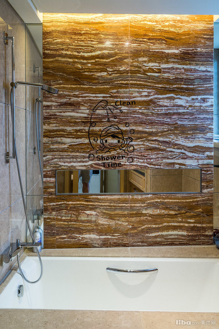 浴室颜色和厨房颜色大相近庭,墙砖上的卡通形象更是让整个浴室看上去更加生动活泼,这个小细节是业主通过和设计师沟通后添加的。
