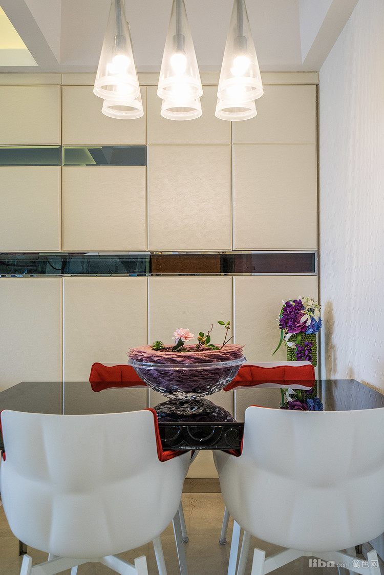 吃餐厅位于客厅的一角,两个简单的空间连同,既节省空间又方便用餐。