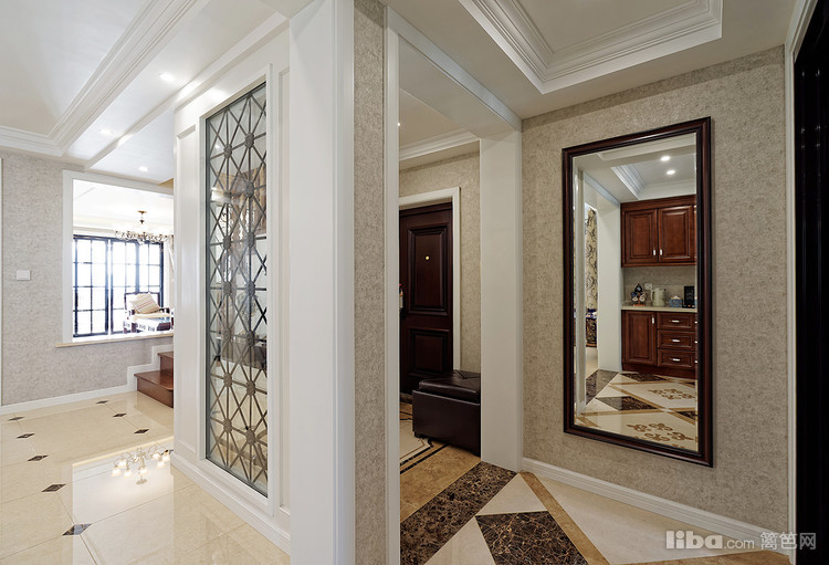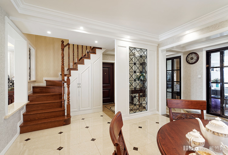 本案为一套190平米的复式房型,本案设计中的一大特色就是巧妙的借景和透景手法,让不同区域的端景交互辉映,造成移步换景的视觉美感。