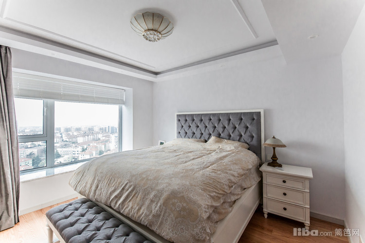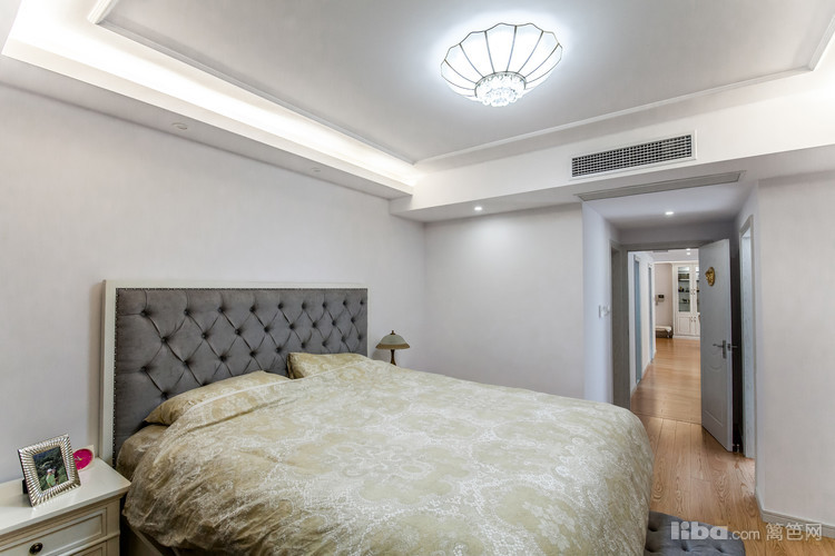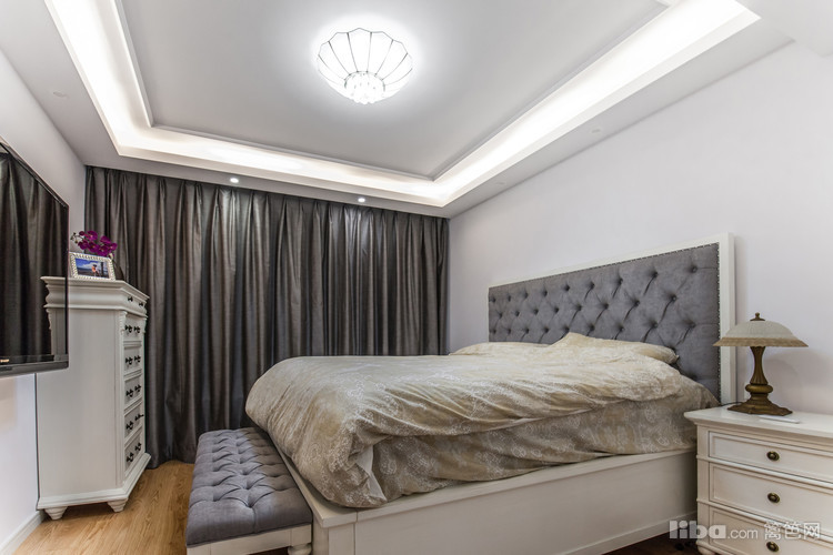 简约的吊顶线条与白色的墙面打造出这样一间看上去极具舒适感的卧室空间,放在床头的小灯让这间卧室显得温馨至极,整间卧室的格局非常简单明了,活动面积也非常的大。